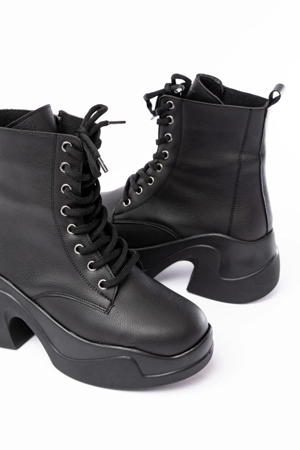 FZ-2550 Siyah Rugan Yüksek Tabanlı Bağcıklı Fermuarlı Günlük Kadın Bot