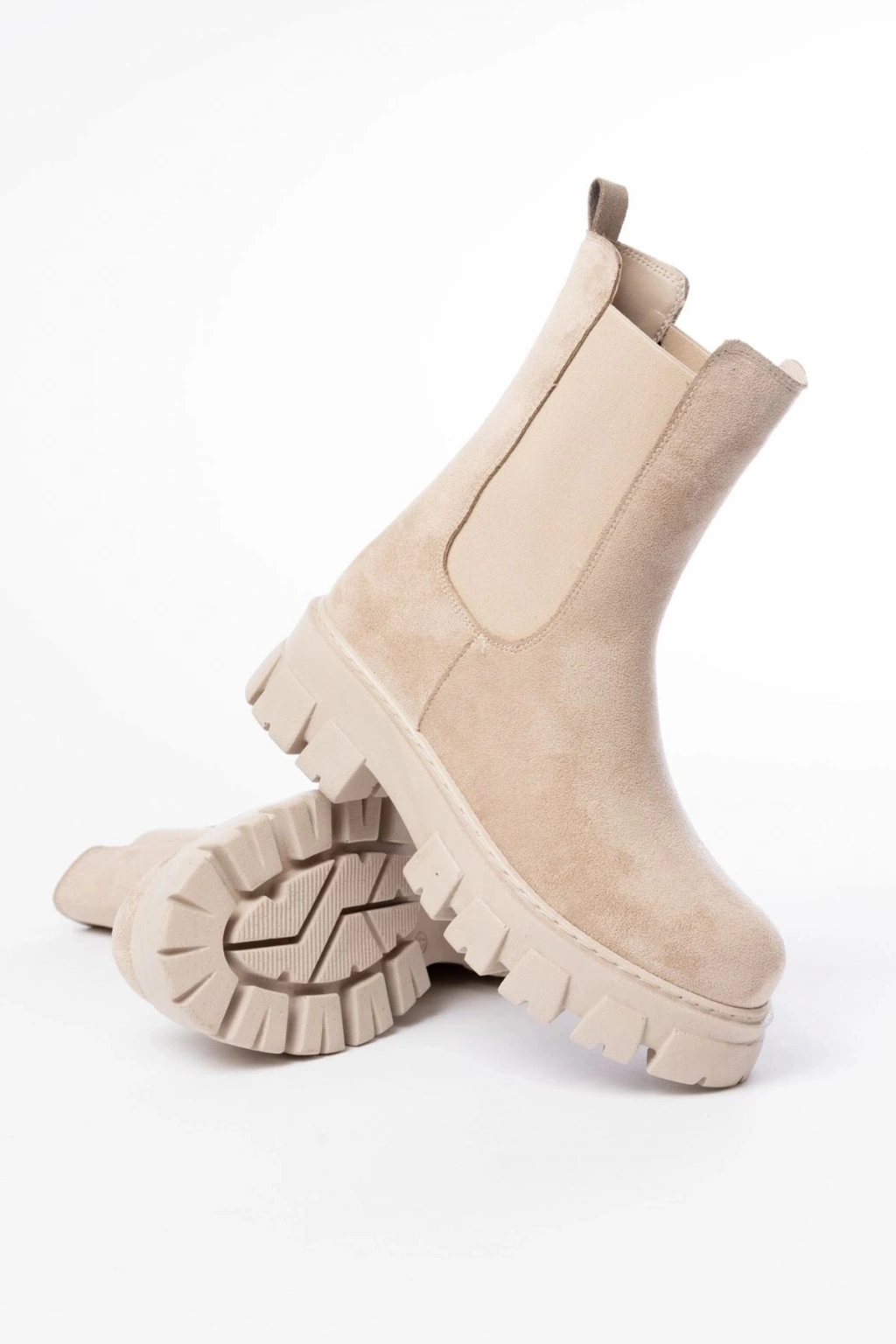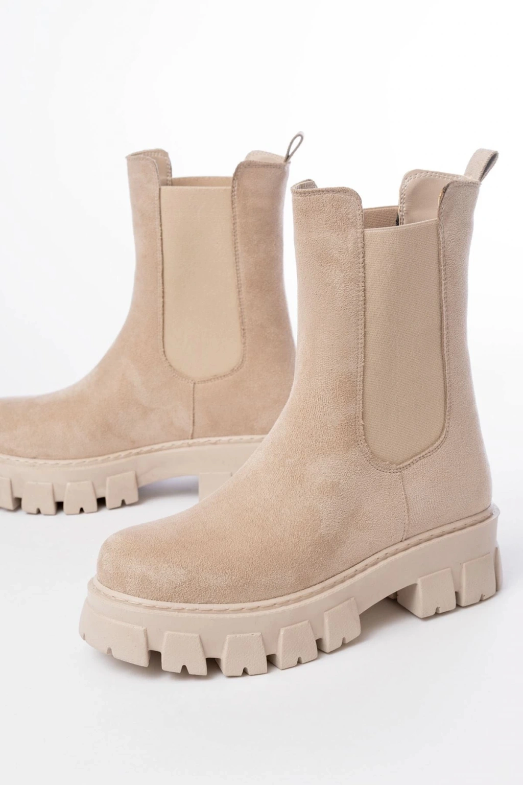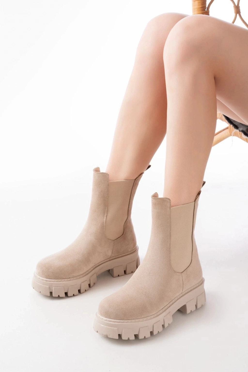 FZ-299 Bej Süet Yüksek Tabanlı Lastikli Günlük Kadın Bot