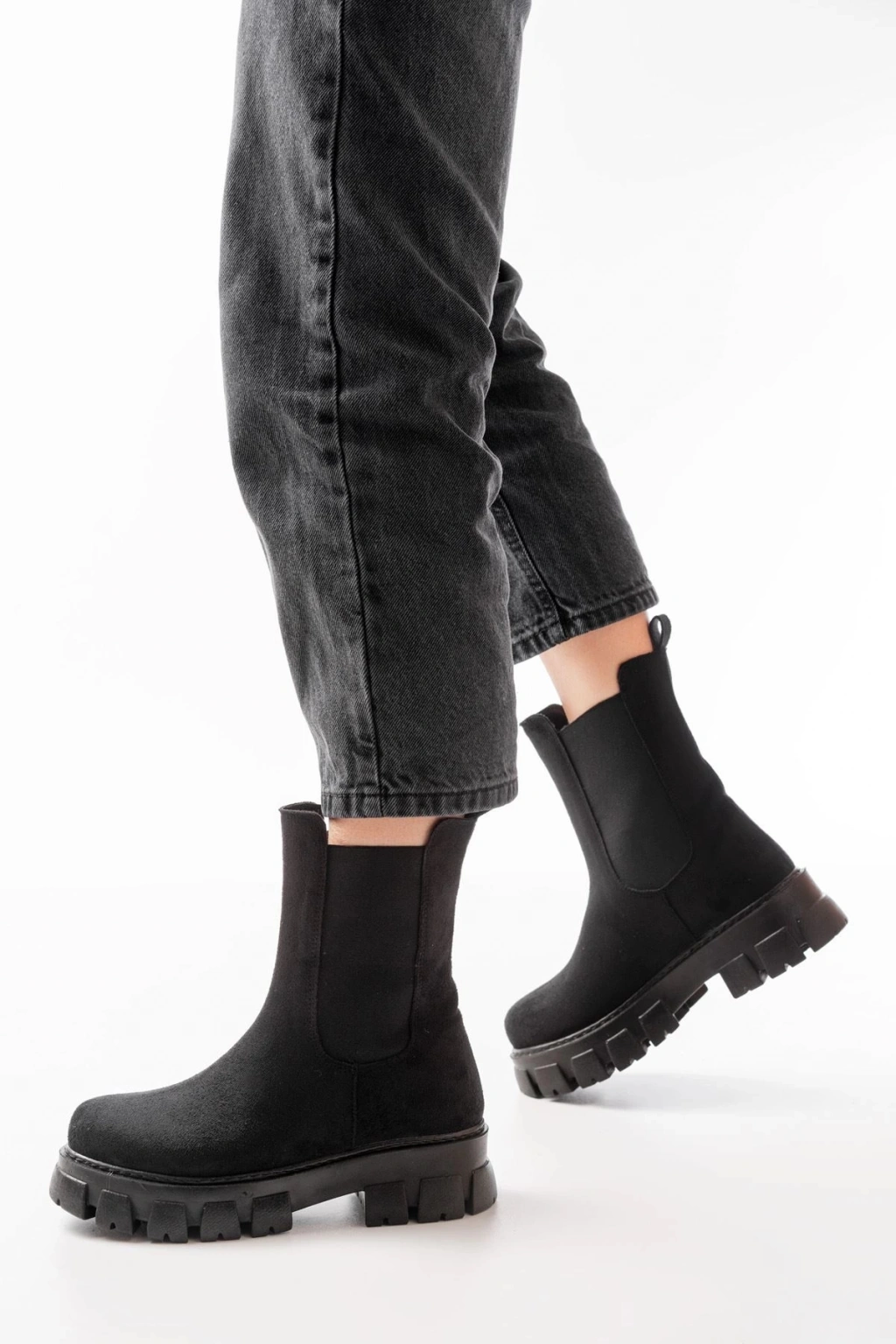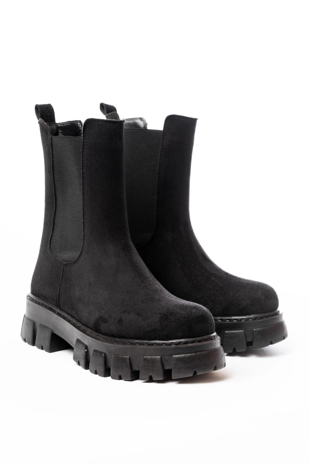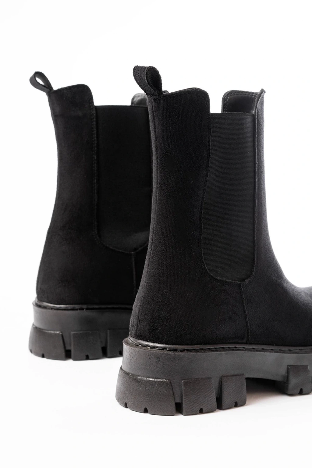 FZ-299 Siyah Süet Yüksek Tabanlı Lastikli Günlük Kadın Bot