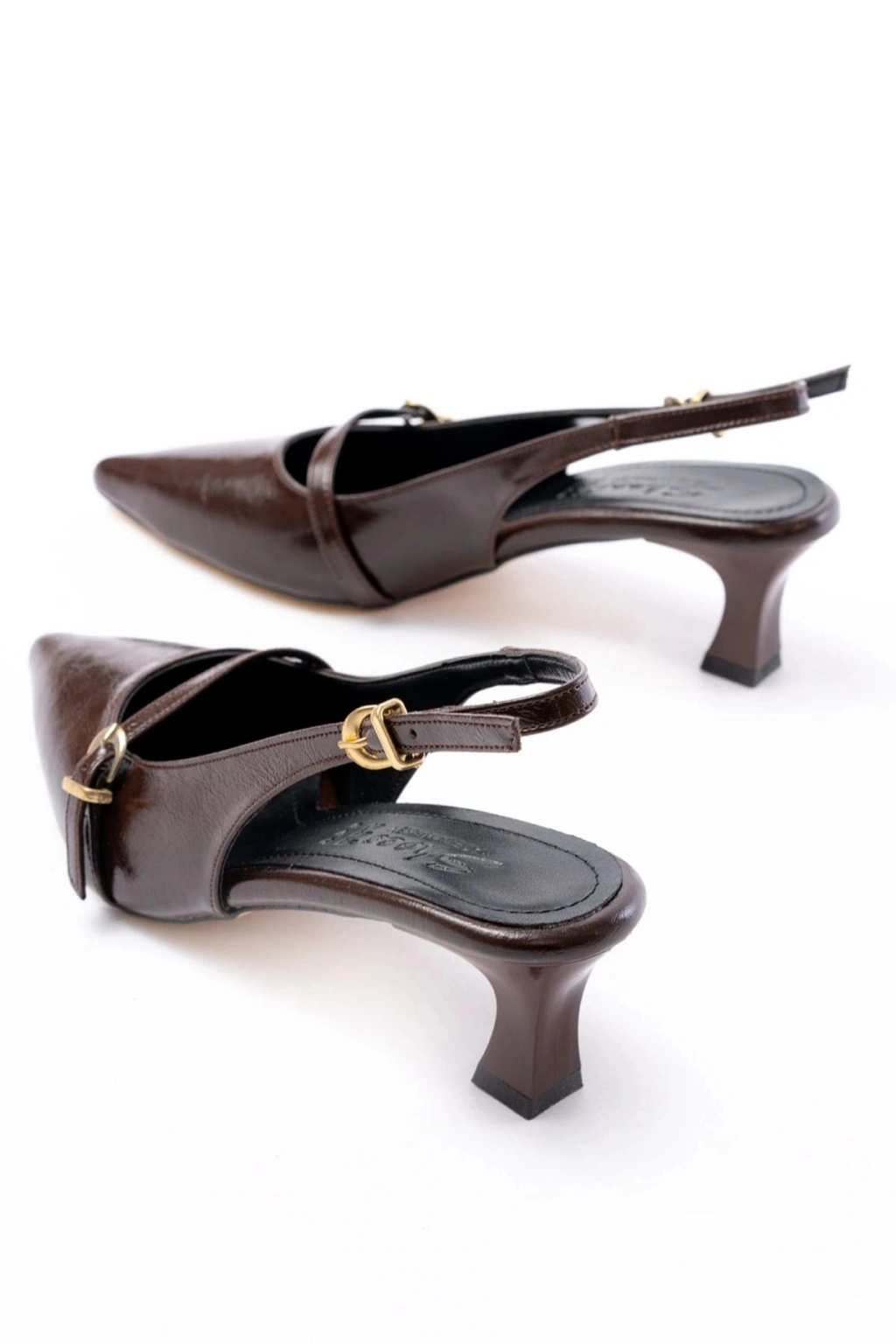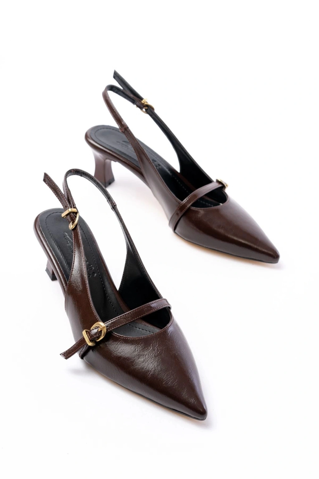 H-470 Kahve Rugan Baret Tokalı Arkası Açık Günlük Kadın Sandalet