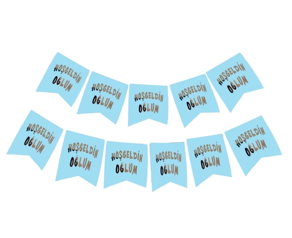 Hoşgeldin Oğlum Yazılı Mavi Üzeri Gümüş Yeni Doğan Bebek Doğum Süsü Afiş Bayrak Flama