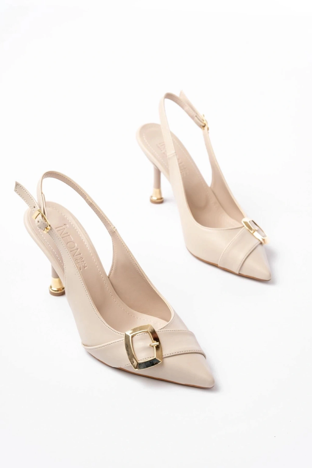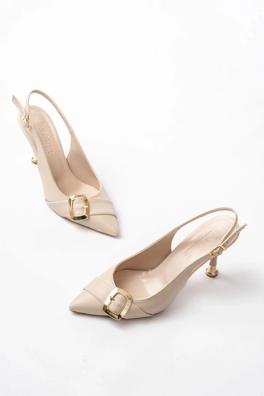 İNF-1151 Bej Günlük Arkası Açık Topuklu Bayan Ayakkabı