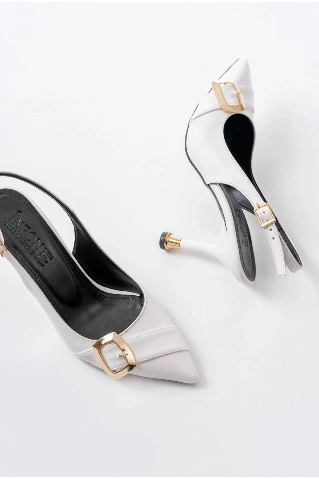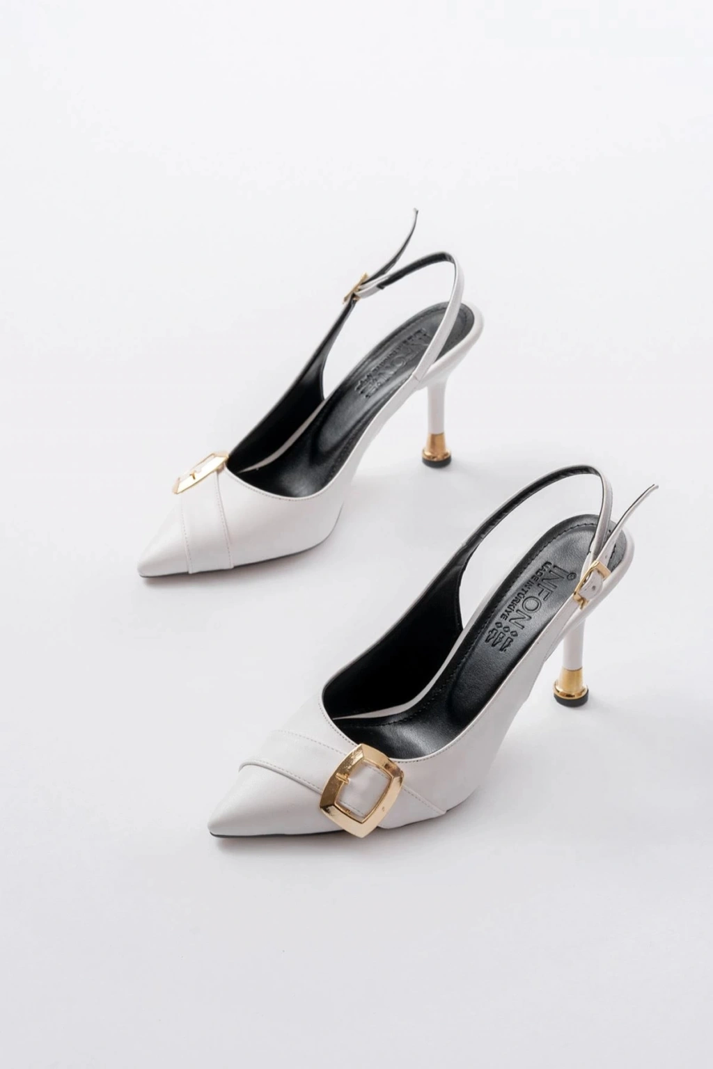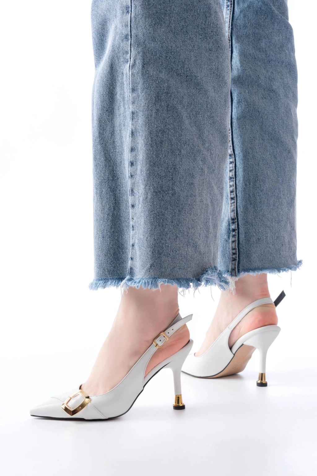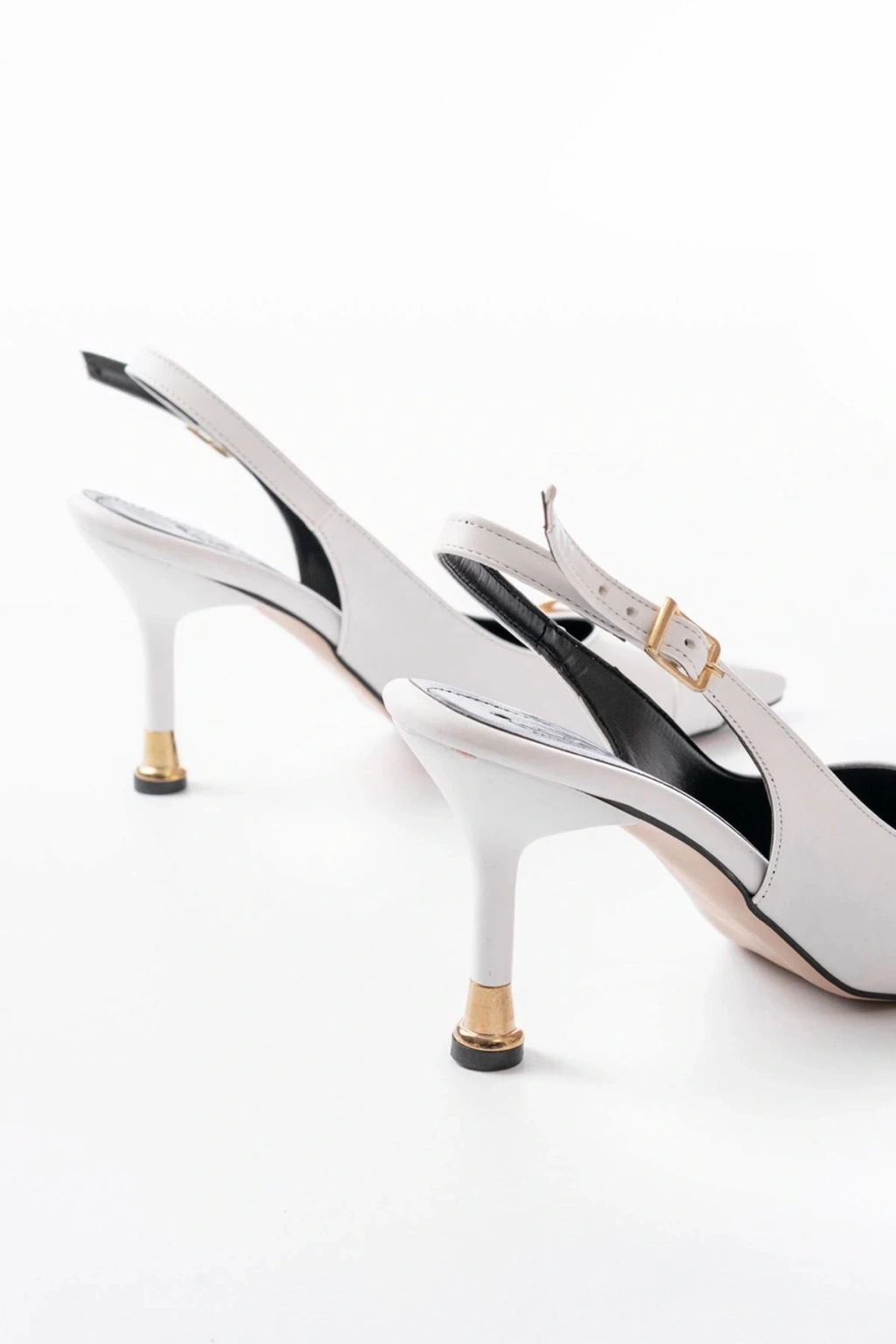 İNF-1151 Beyaz Günlük Arkası Açık Topuklu Bayan Ayakkabı
