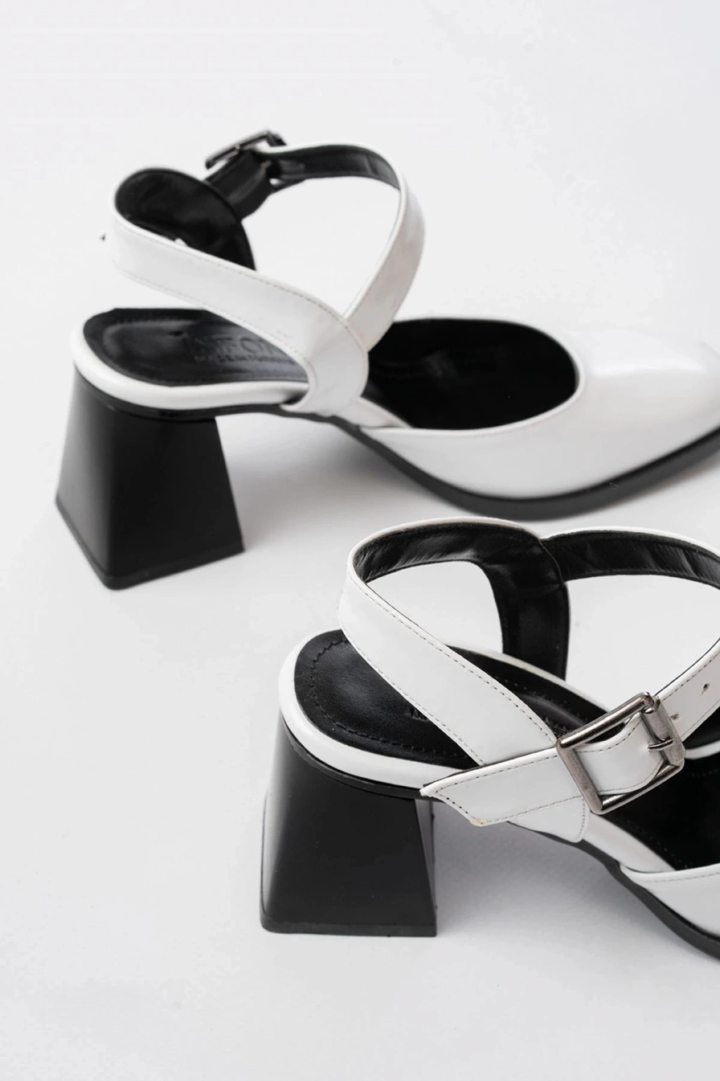 İNF-40450 Beyaz Rugan Günlük Arkası Açık Topuklu Bayan Ayakkabı