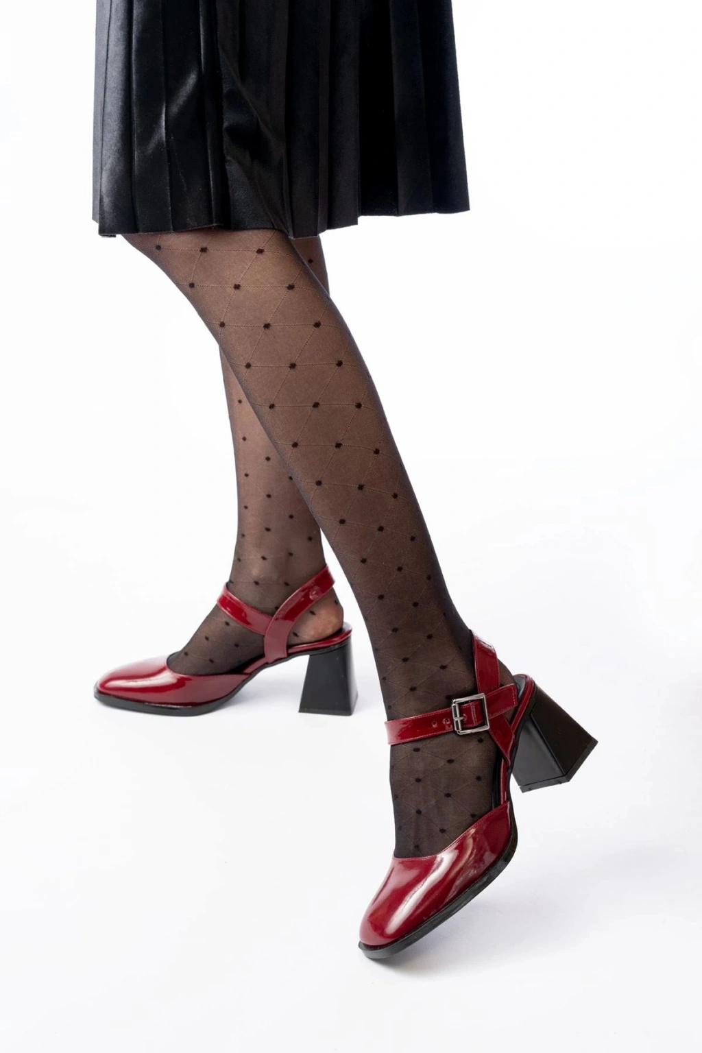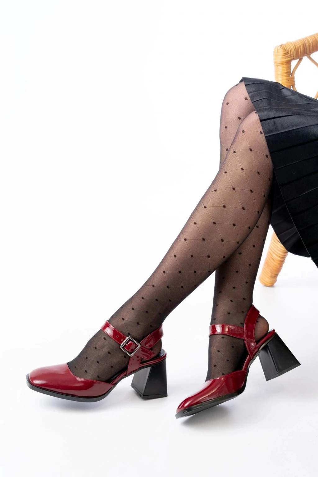 ST-002 Bordo Rugan Günlük 7 cm Topuklu Bayan Ayakkabı