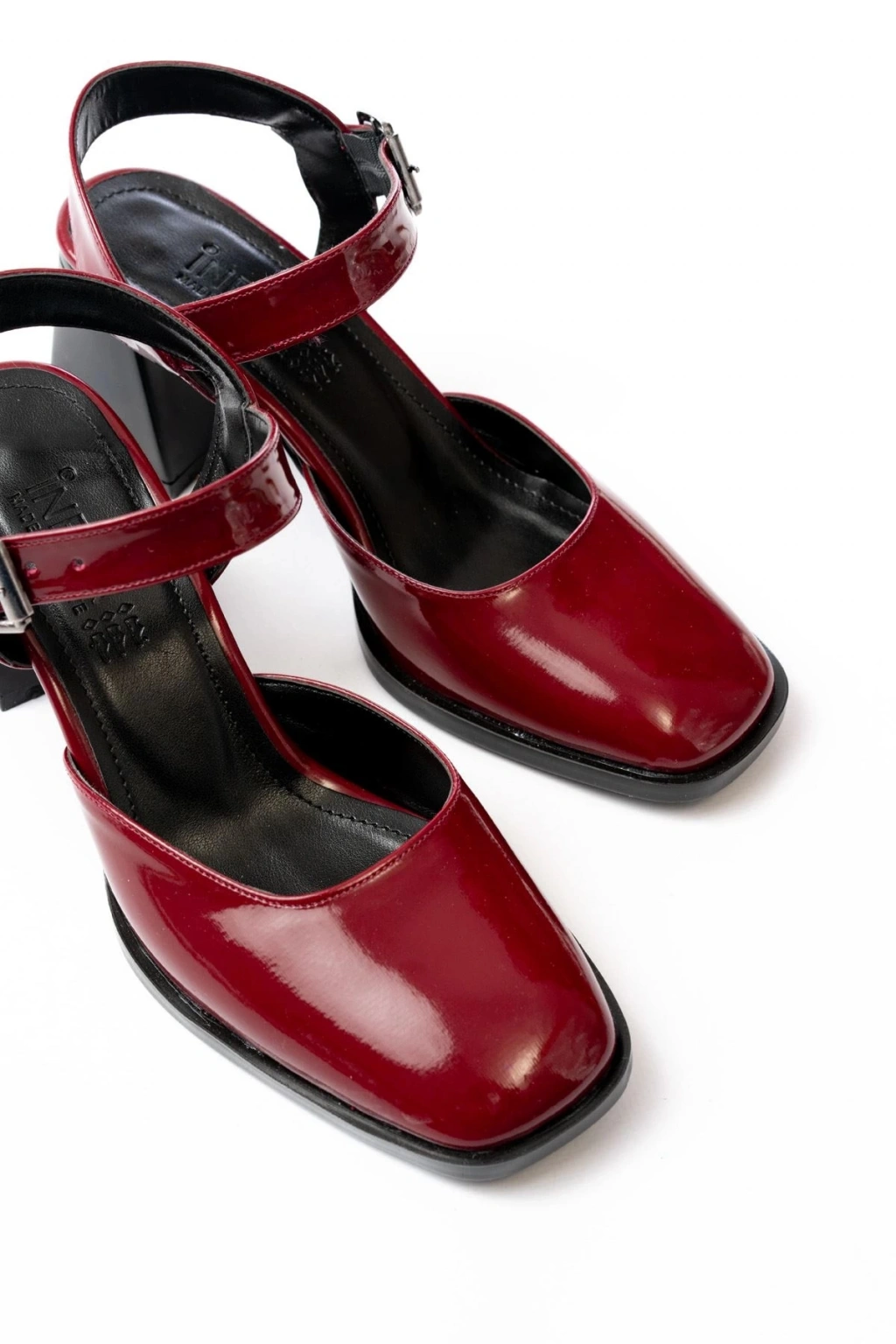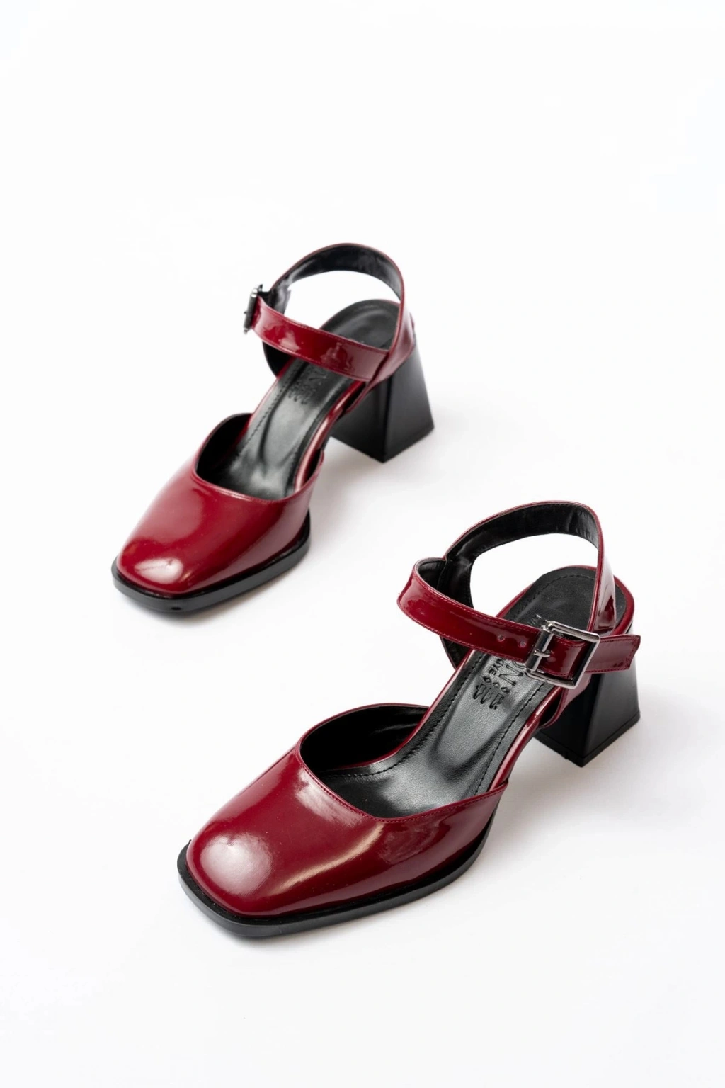 İNF-40450 Bordo Rugan Günlük Arkası Açık Topuklu Bayan Ayakkabı