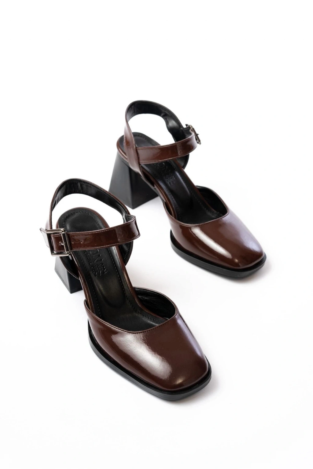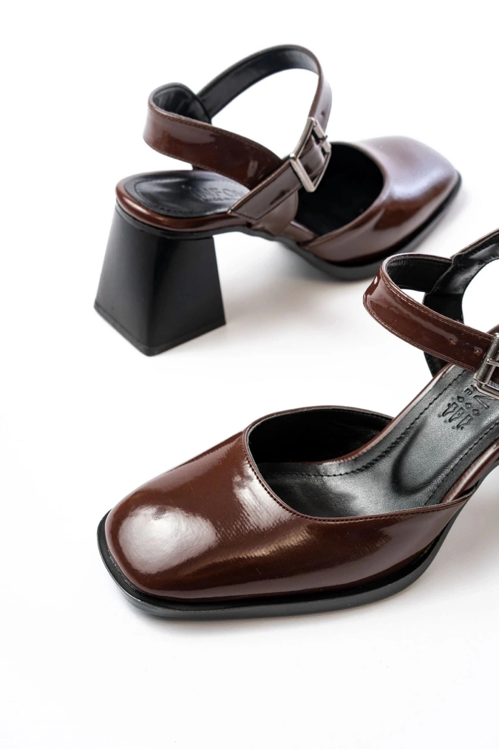 İNF-40450 Kahve Rugan Günlük Arkası Açık Topuklu Bayan Ayakkabı