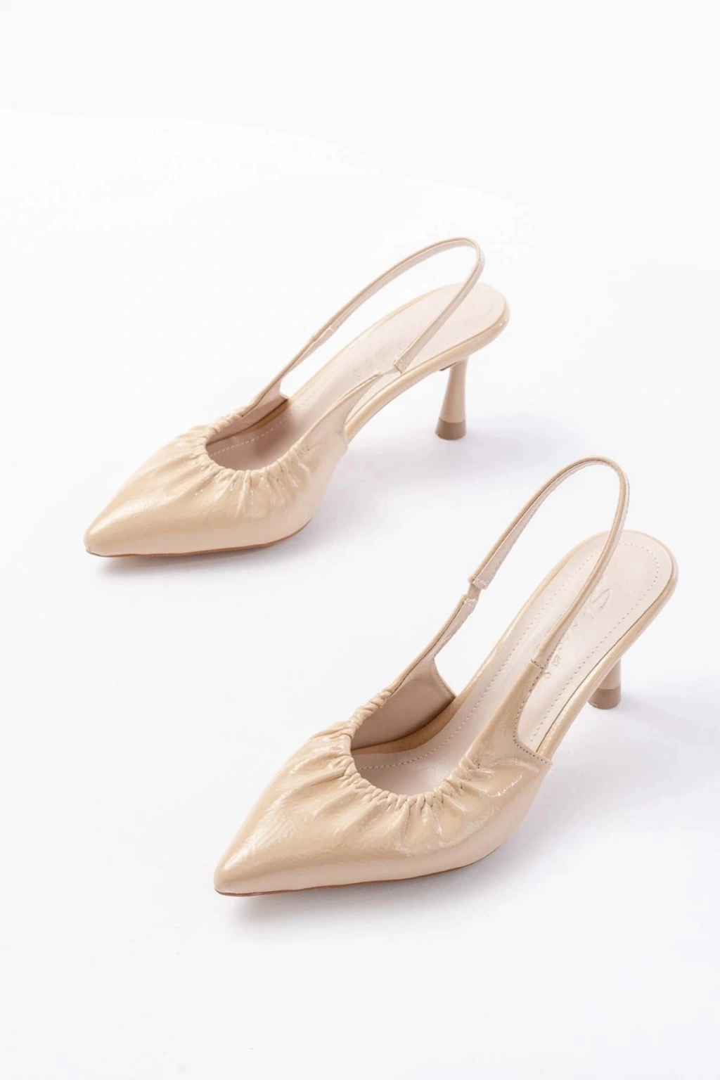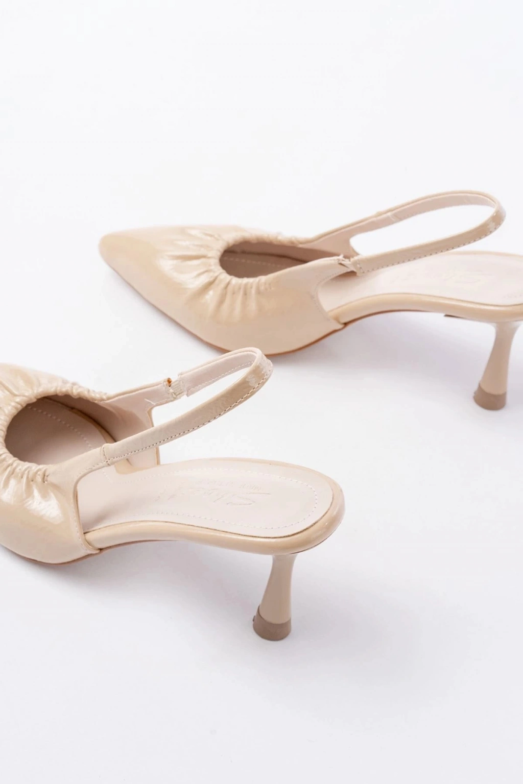 İNF-40451 Bej Kırışık Rugan Günlük Arkası Açık Topuklu Bayan Ayakkabı
