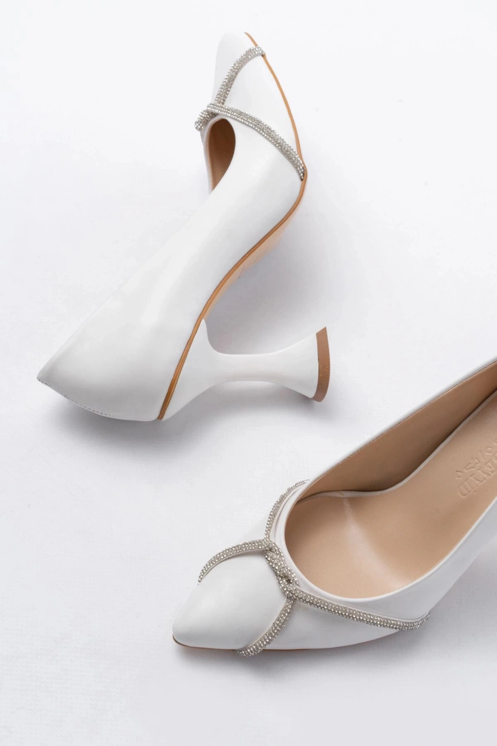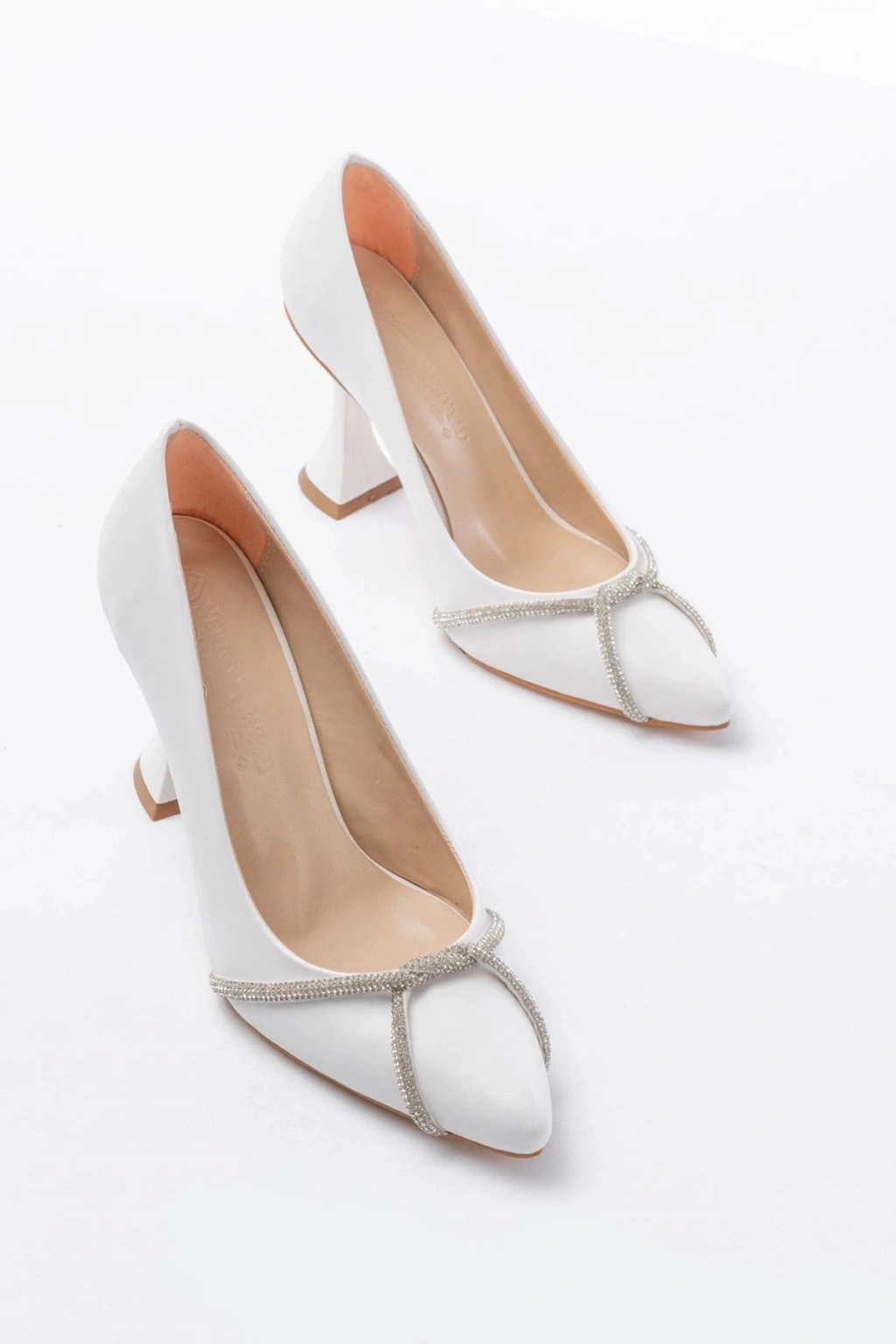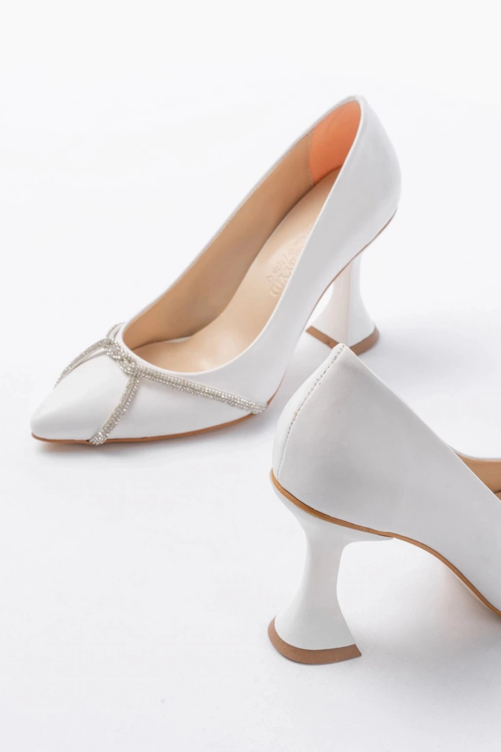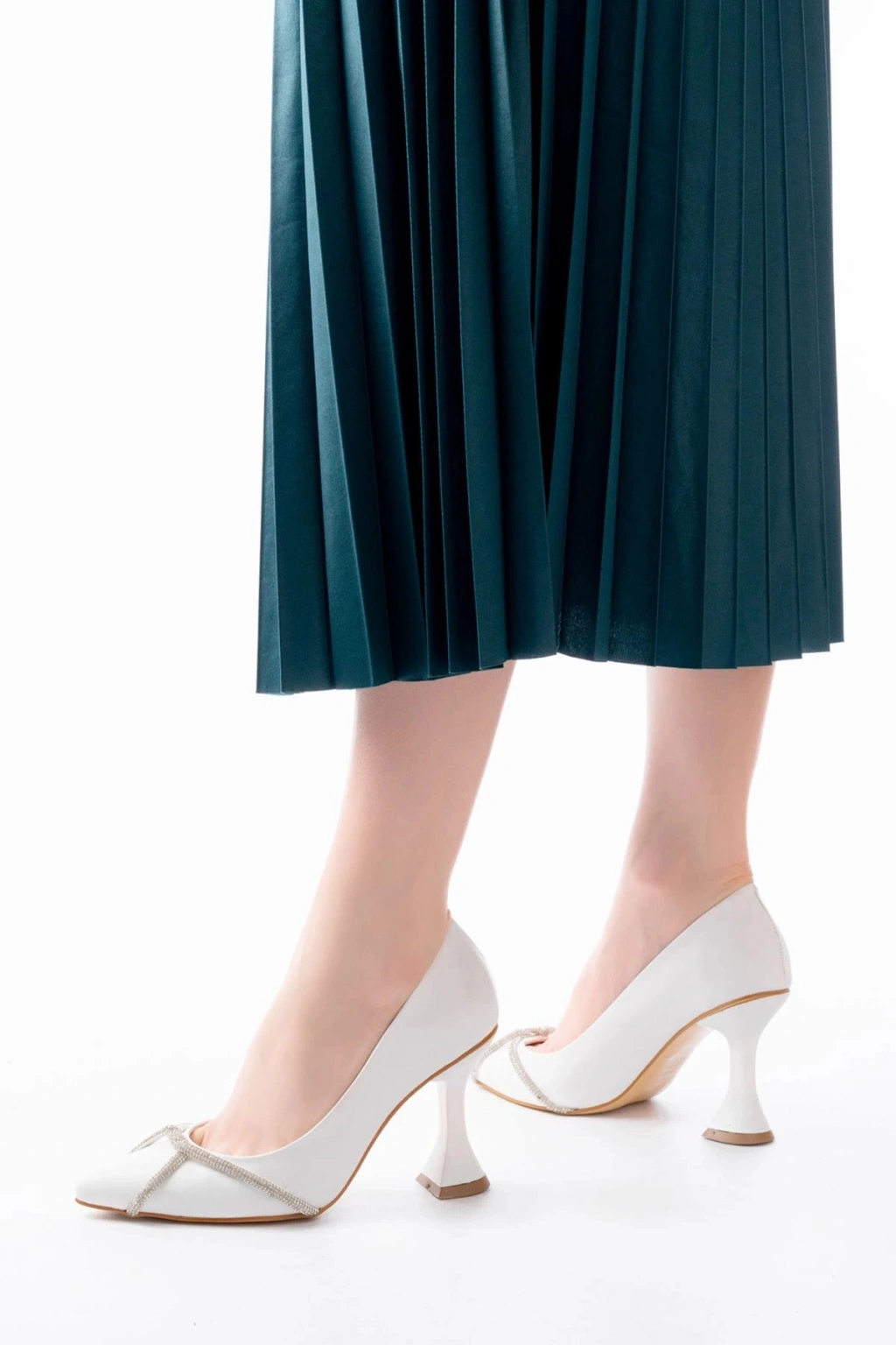 Ceyda Beyaz Cilt Topuklu Ayakkabı