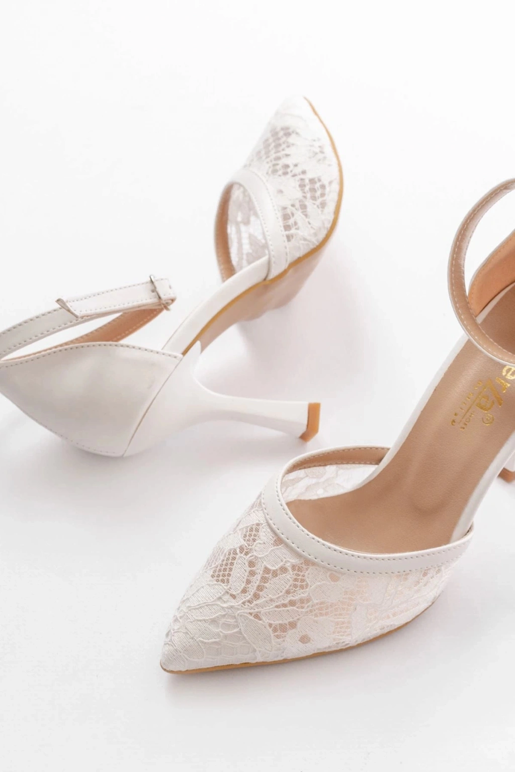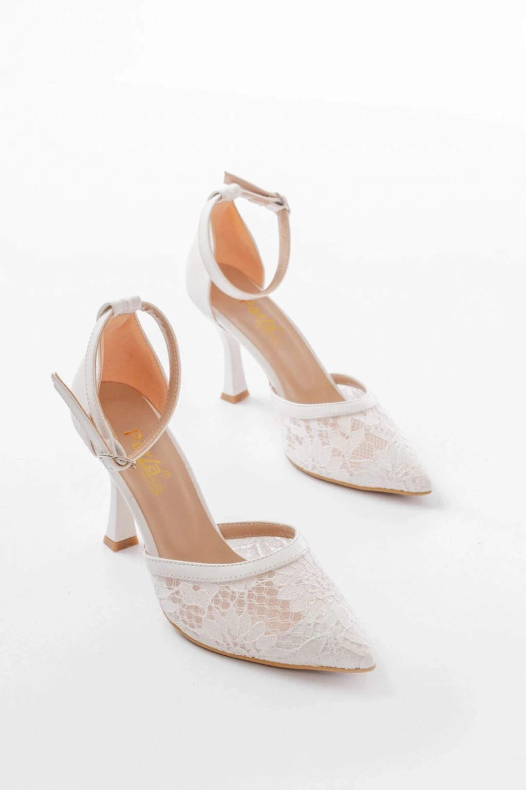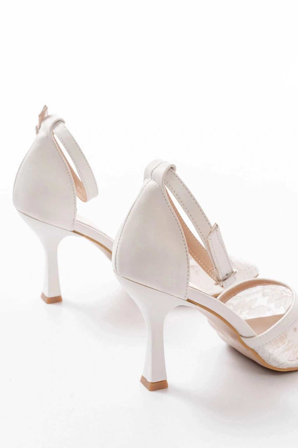 K-404 Beyaz Fileli Çiçek Detaylı Kadın Topuklu Ayakkabı