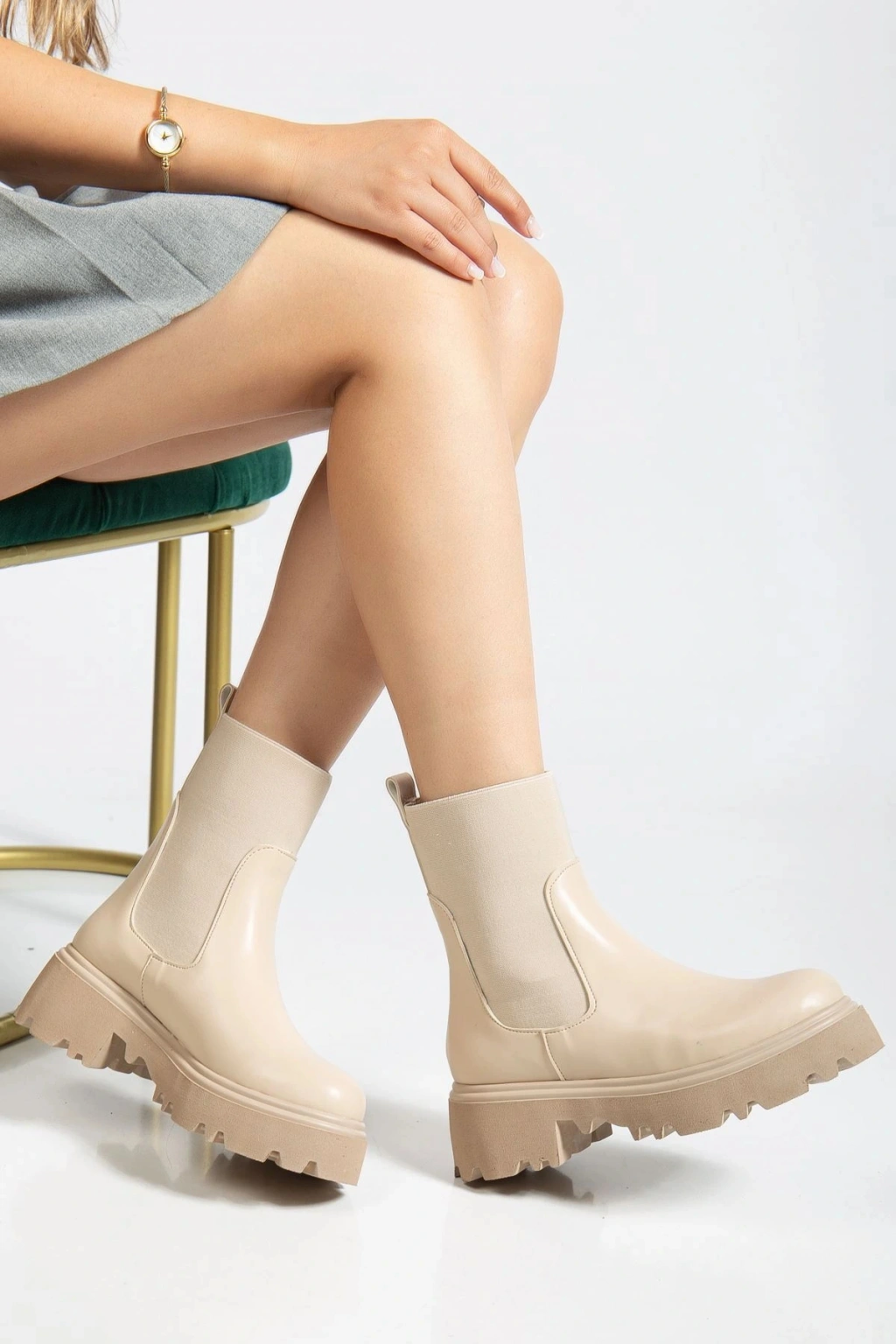 K-815 Bej Lastikli Yüksek Tabanlı Günlük Kadın Bot
