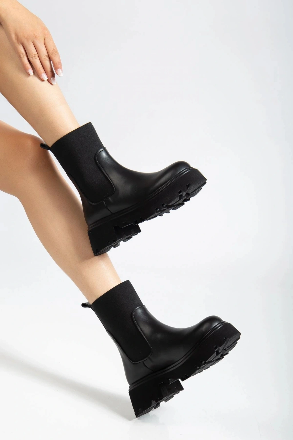 K-815 Siyah Lastikli Yüksek Tabanlı Günlük Kadın Bot