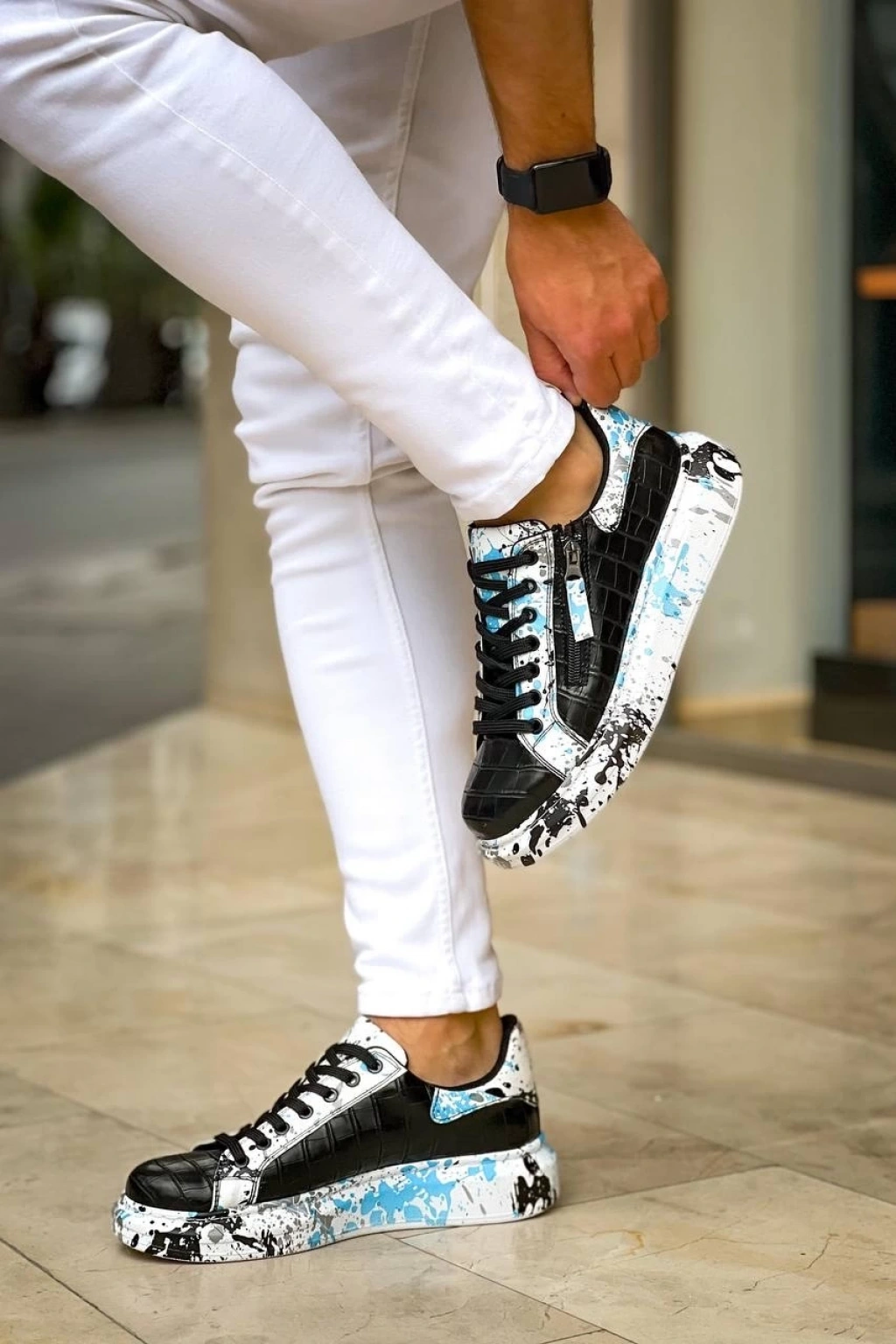 KB-02 Kuback Bağcıklı Crocodile Siyah Mavi Günlük Erkek Ayakkabı