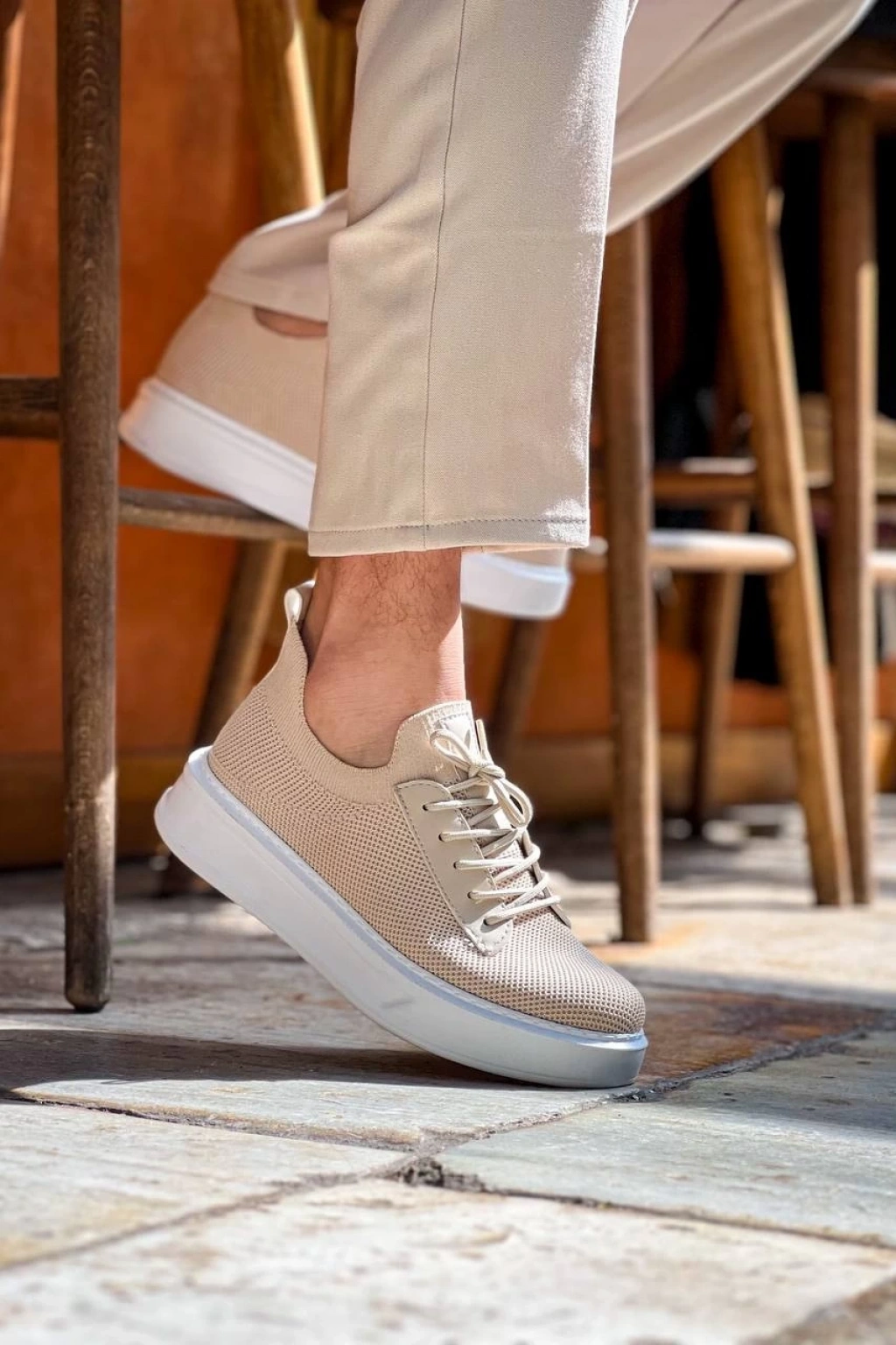 KB-116 Kuback Bej Bağcıklı Triko Günlük Erkek Ayakkabı
