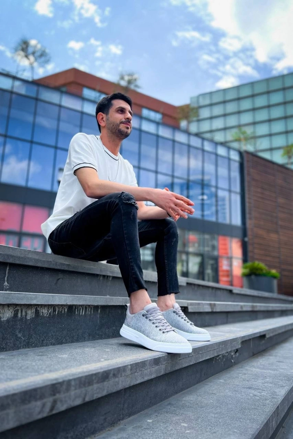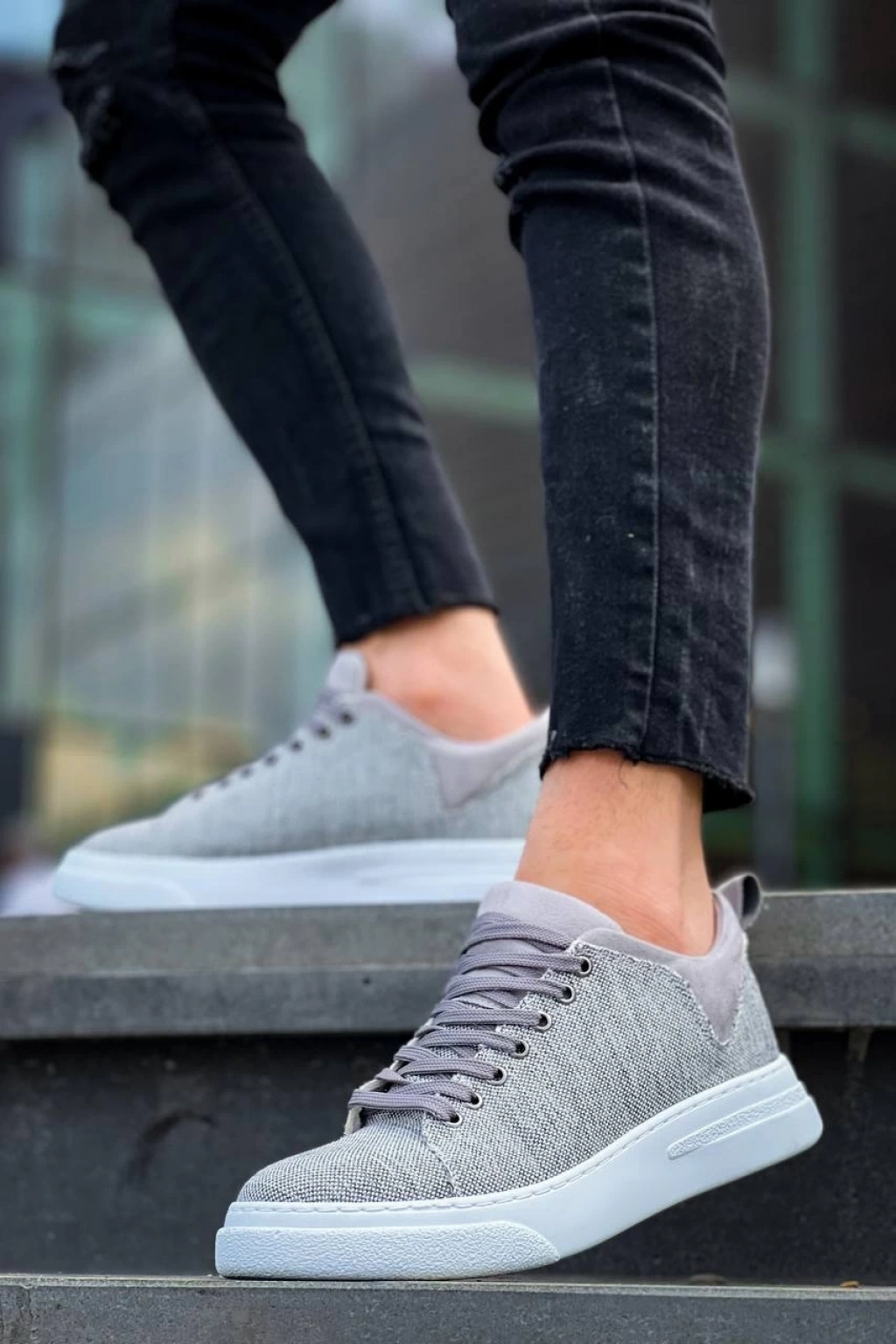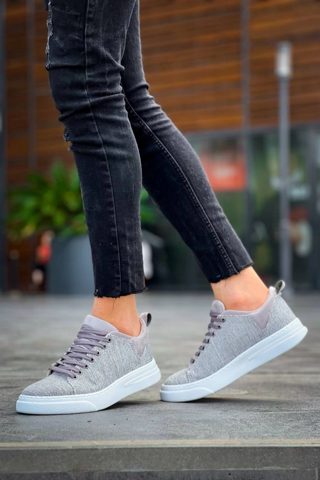 KB-X204 Kuback Gri Keten Beyaz Yüksek Taban Günlük Erkek Spor Ayakkabı