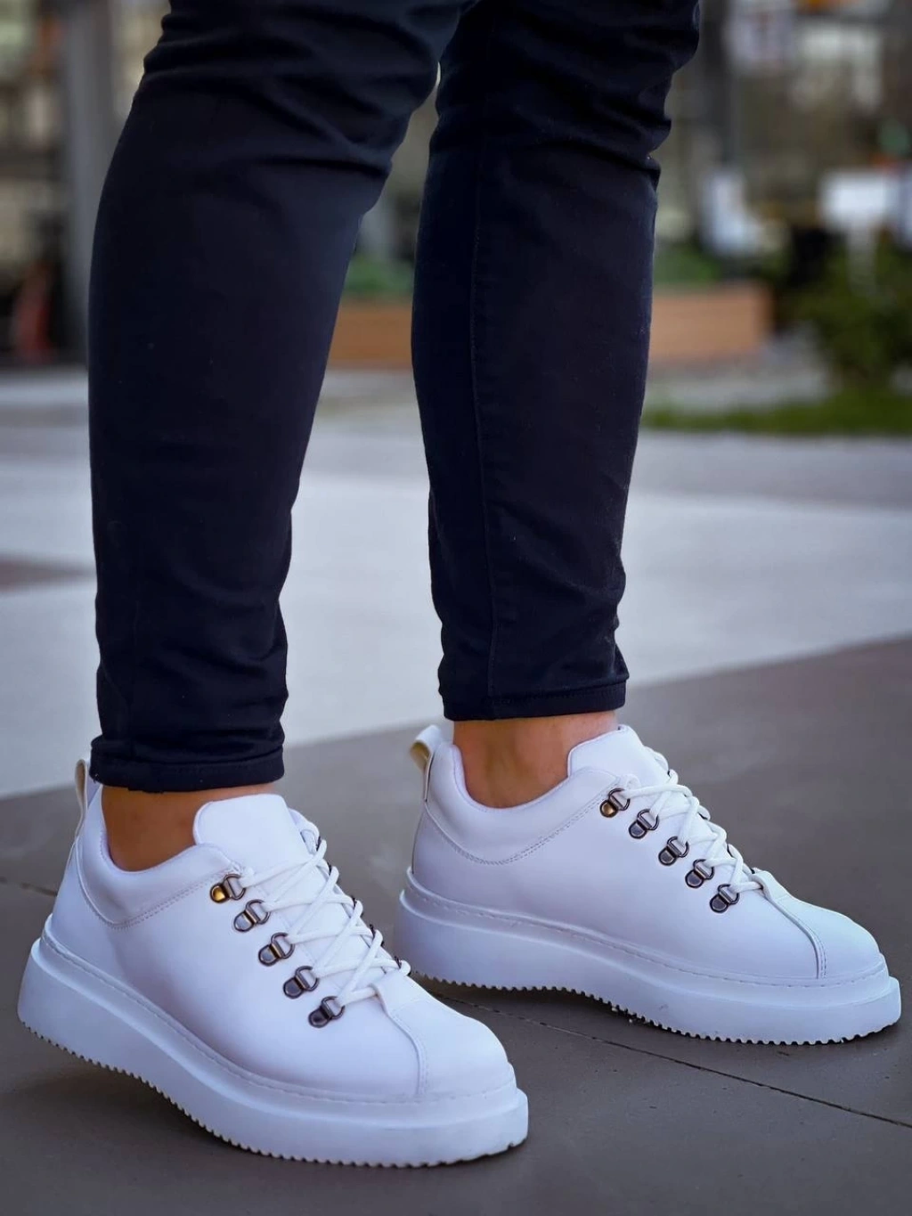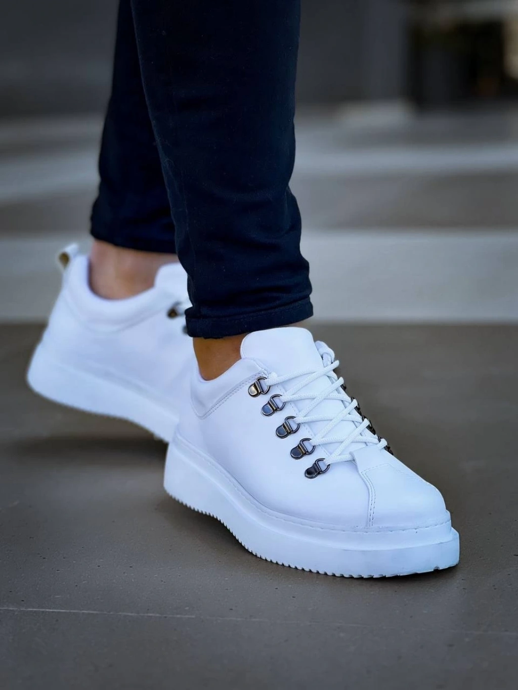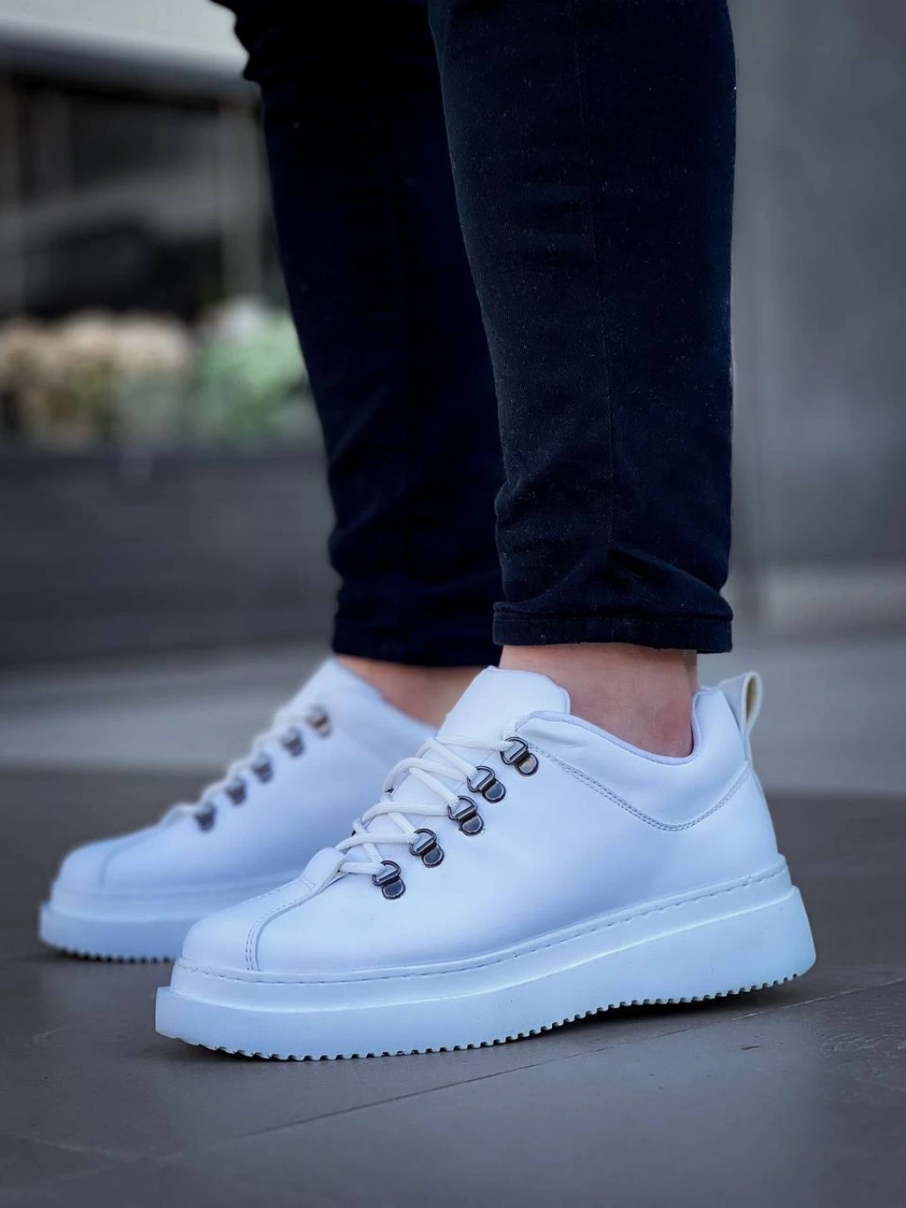 KB-X4 Kuback BEYAZ CİLT Yüksek Taban Bağcıklı Günlük Erkek Ayakkabı