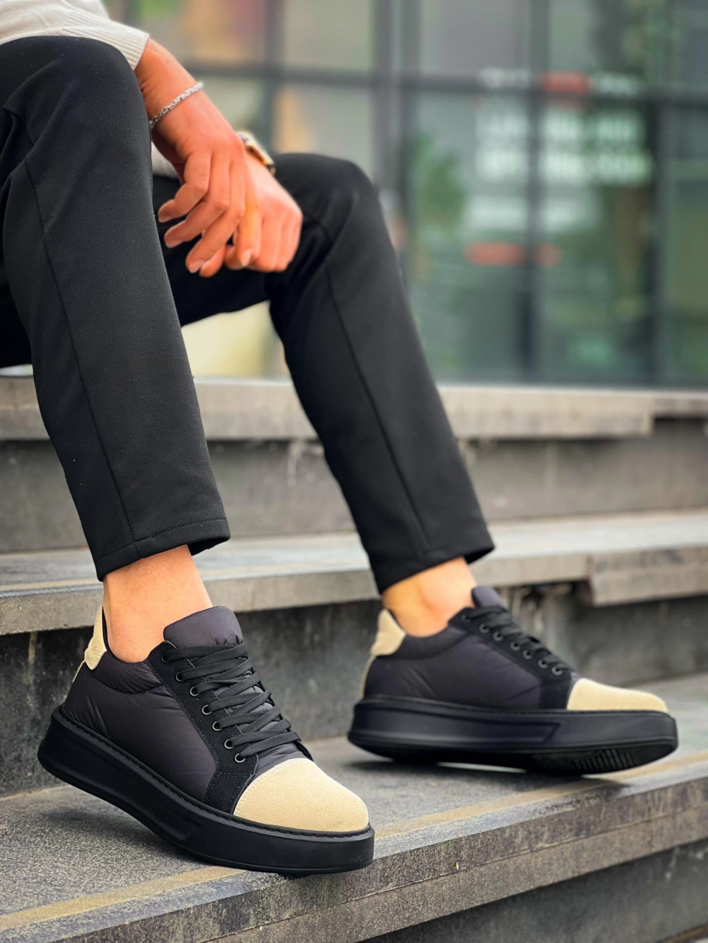 KB-X46 Kuback Siyah Bej Yüksek Siyah Taban Günlük Spor Ayakkabı