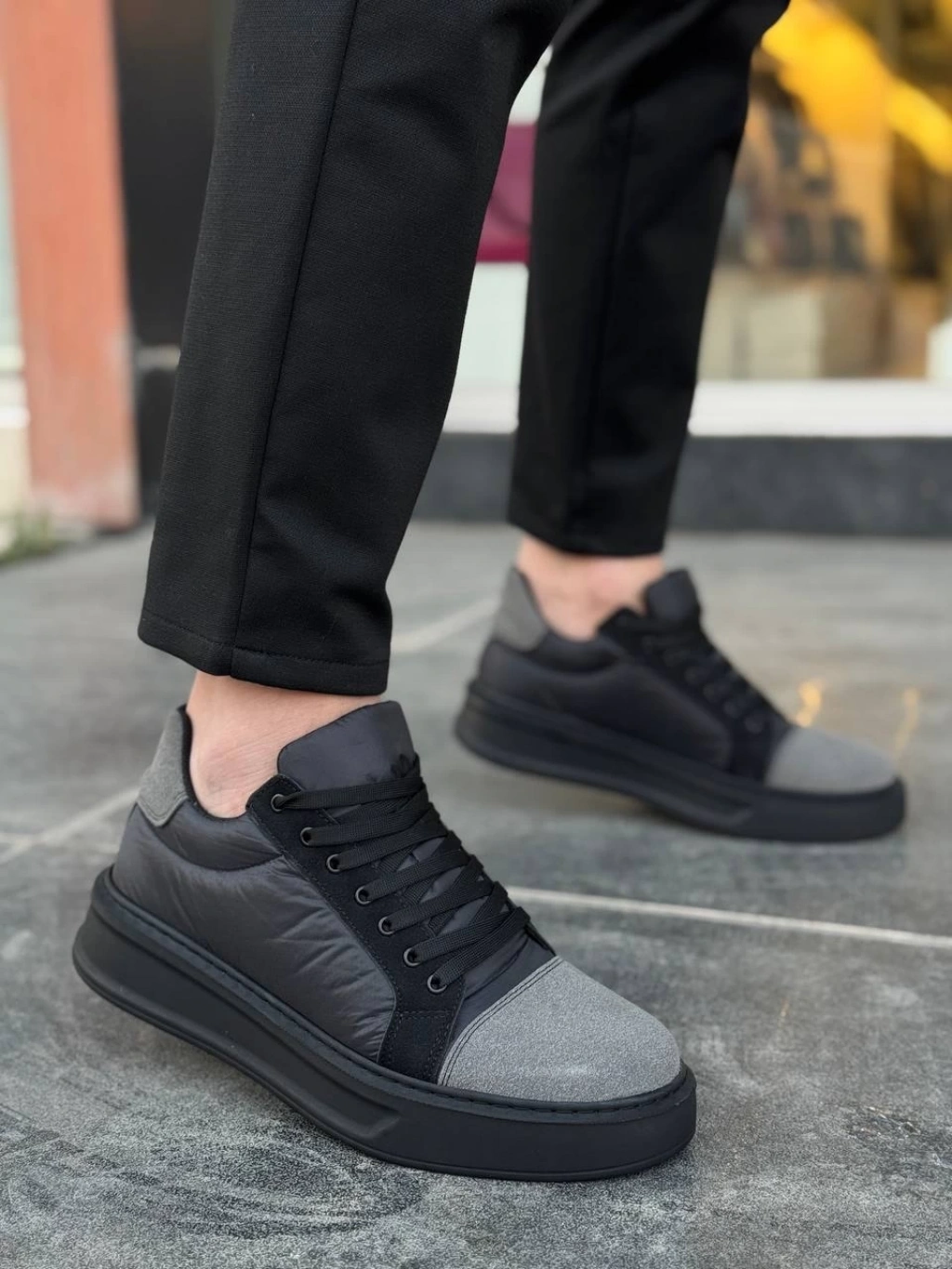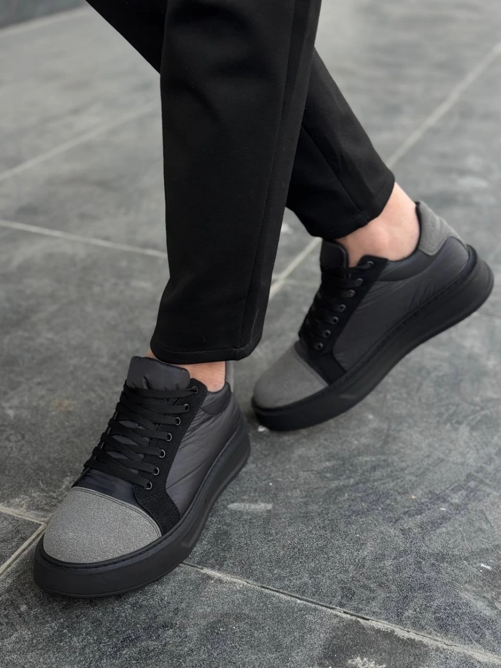 KB-X46 Kuback Siyah Gri Yüksek Siyah Taban Günlük Spor Ayakkabı