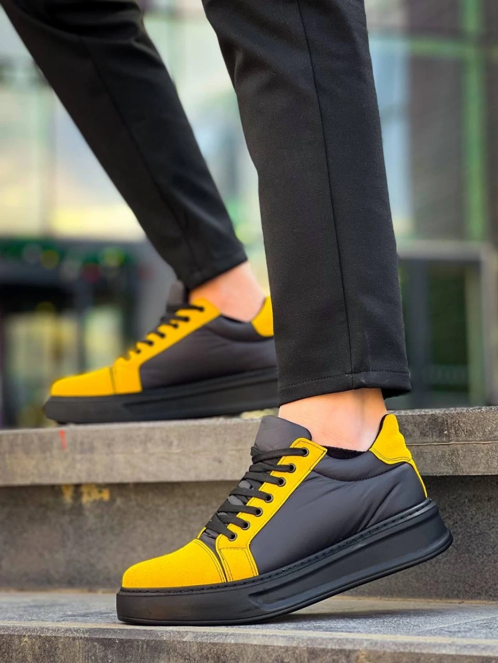KB-X46 Kuback Siyah Sarı Yüksek Siyah Taban Günlük Spor Ayakkabı