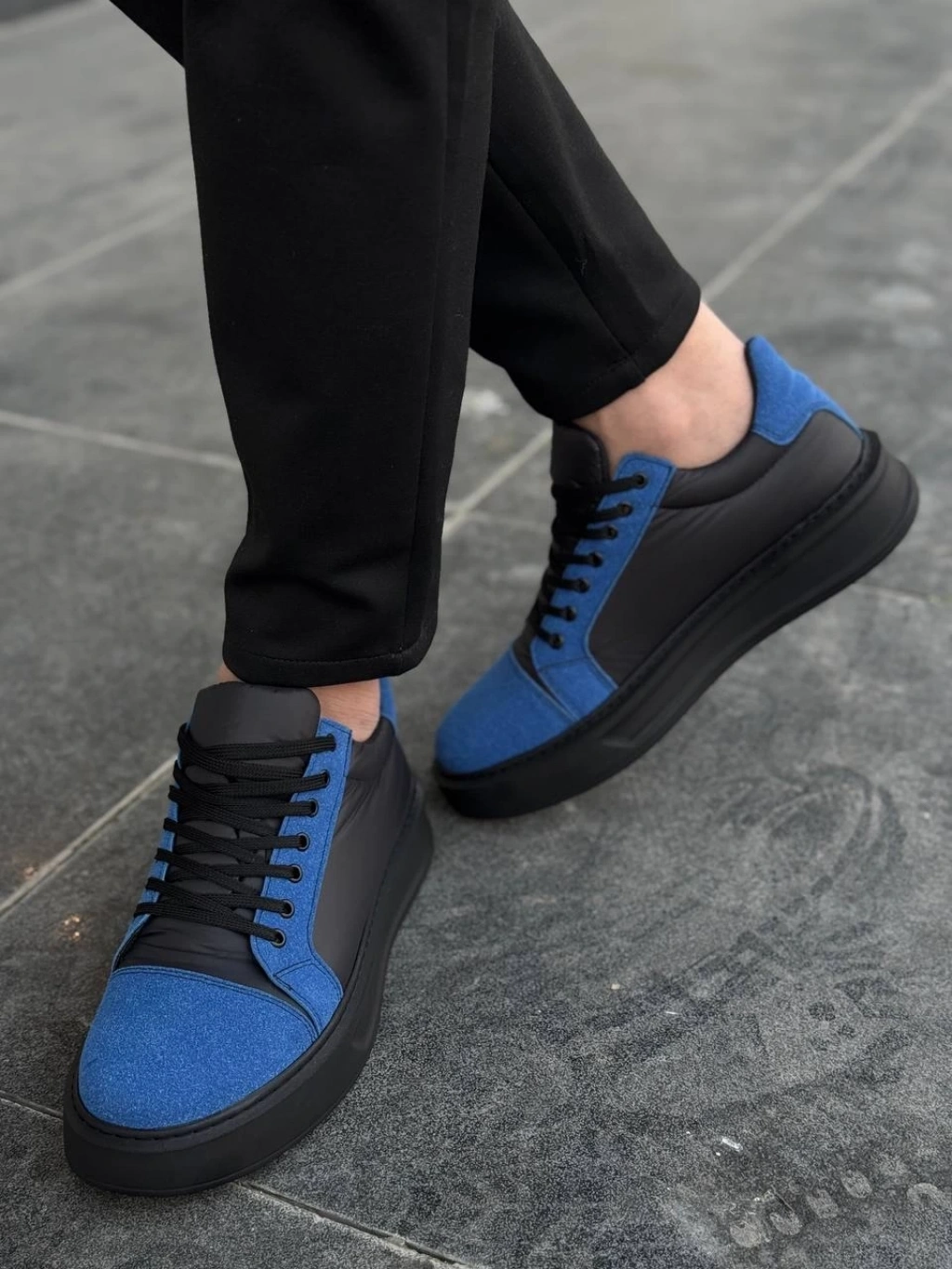KB-X46 Kuback Siyah Sax Mavi Yüksek Siyah Taban Günlük Spor Ayakkabı