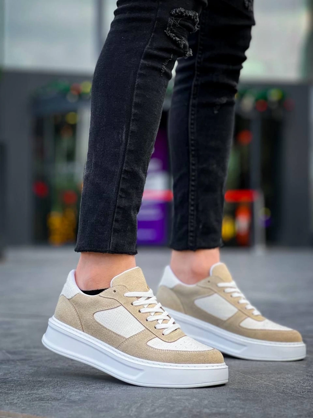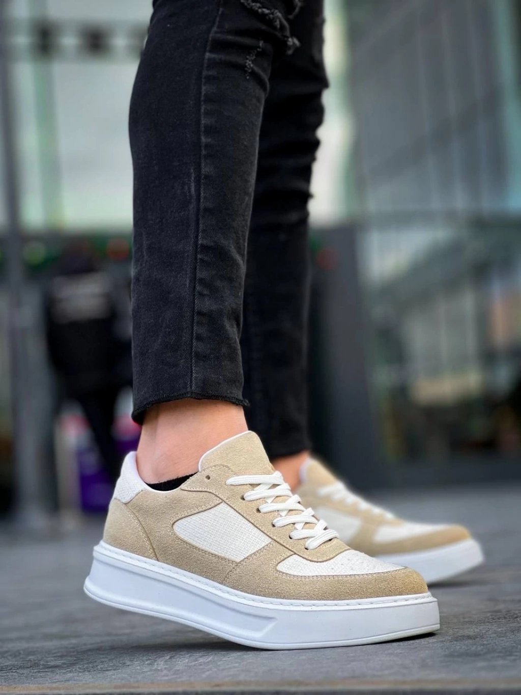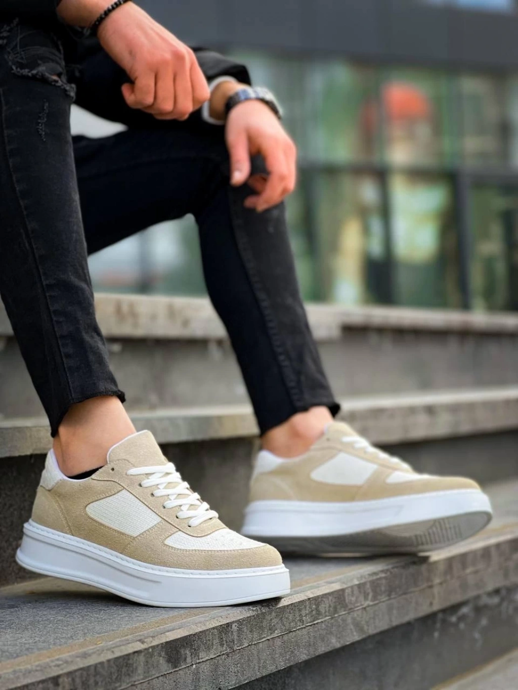 KB-X8 Kuback Bej Keten Süet Yüksek Taban Günlük Spor Ayakkabı