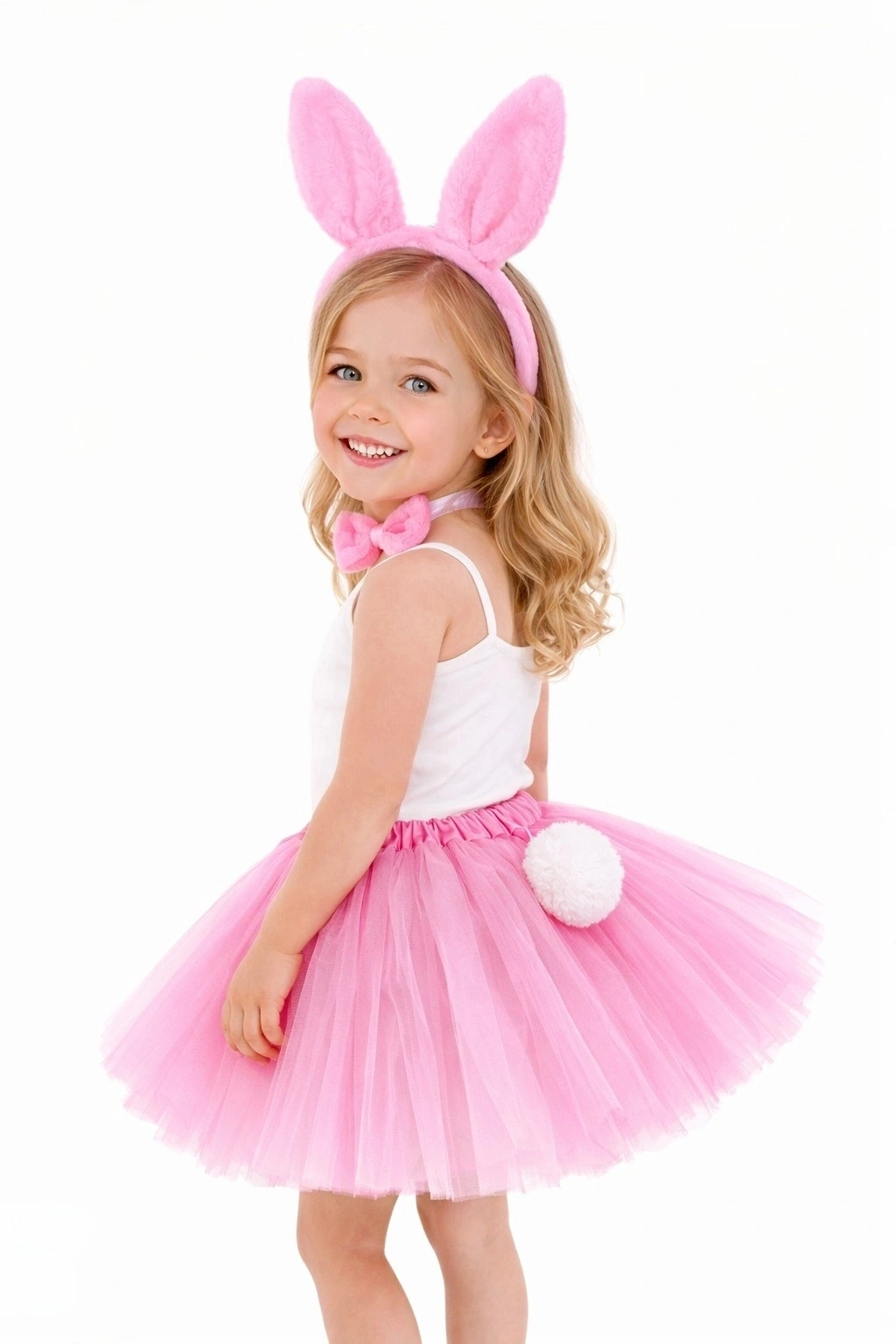 Set içerisinde bulunan pembe tütü etek, hafif ve kabarık yapısıyla çocukların rahatça hareket etmesine olanak tanır. Tavşan temalı aksesuarlar ile kombinlendiğinde sahnede estetik ve eğlenceli bir kostüm görünümü elde edilir. Özellikle dans, bale ve gösteri amaçlı kullanımlar için sıkça tercih edilmektedir.
