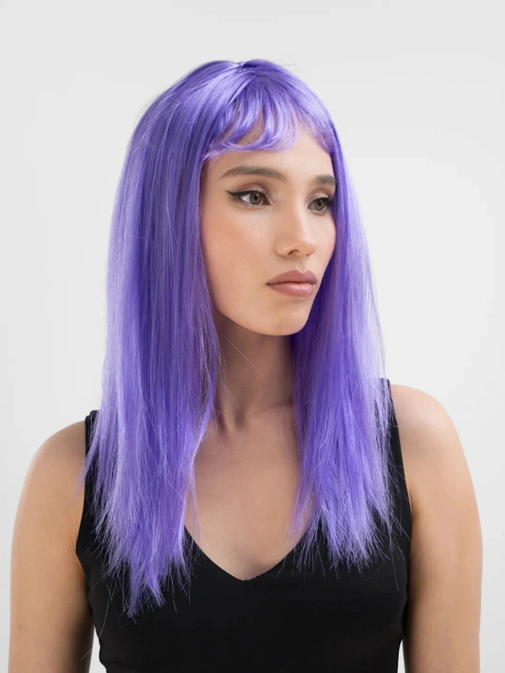 Lila Renk Uzun Düz Parti Peruğu
