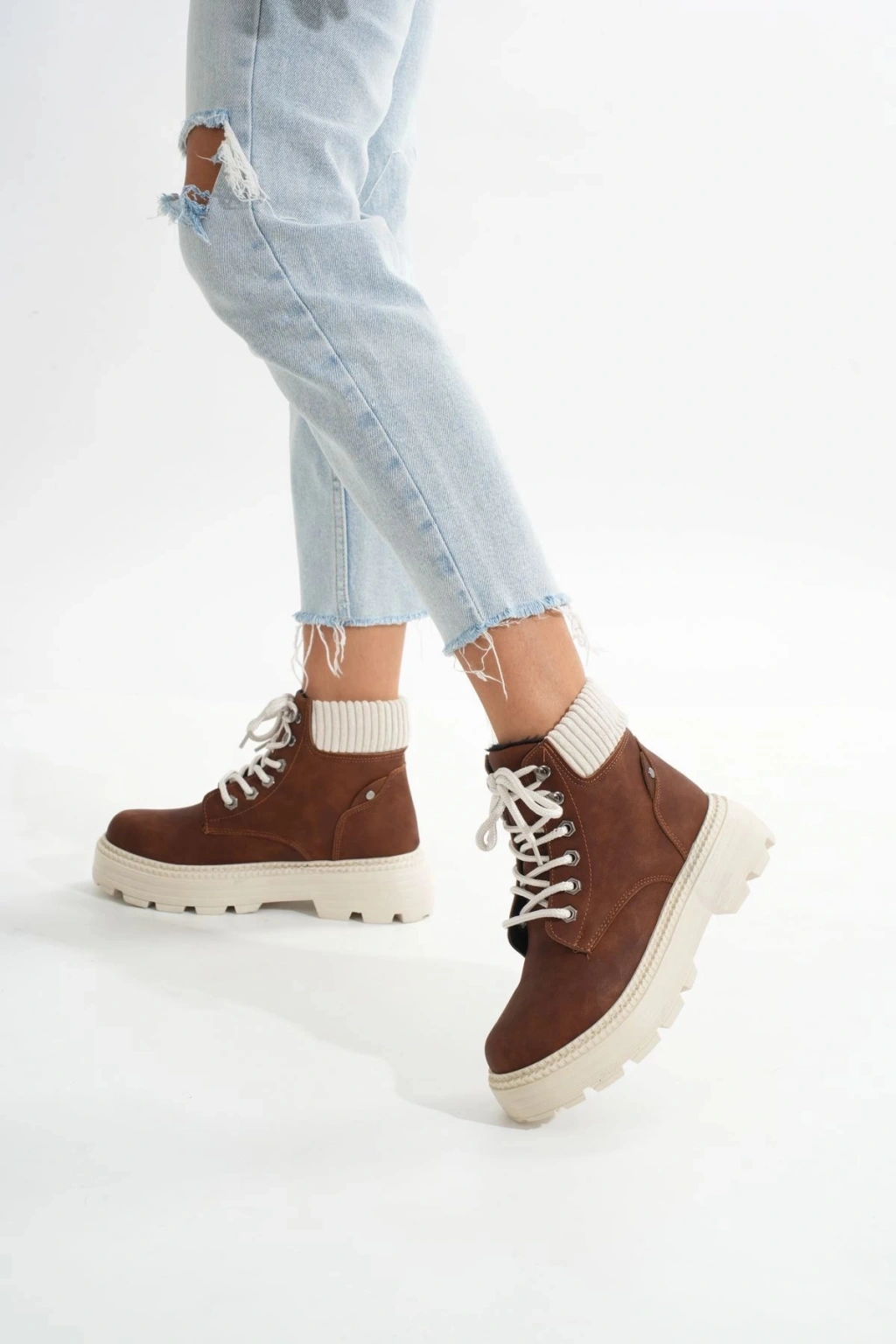 LMÇ-2045 Kahverengi Süet Bağcıklı Kalın Taban Kadın Günlük Bot