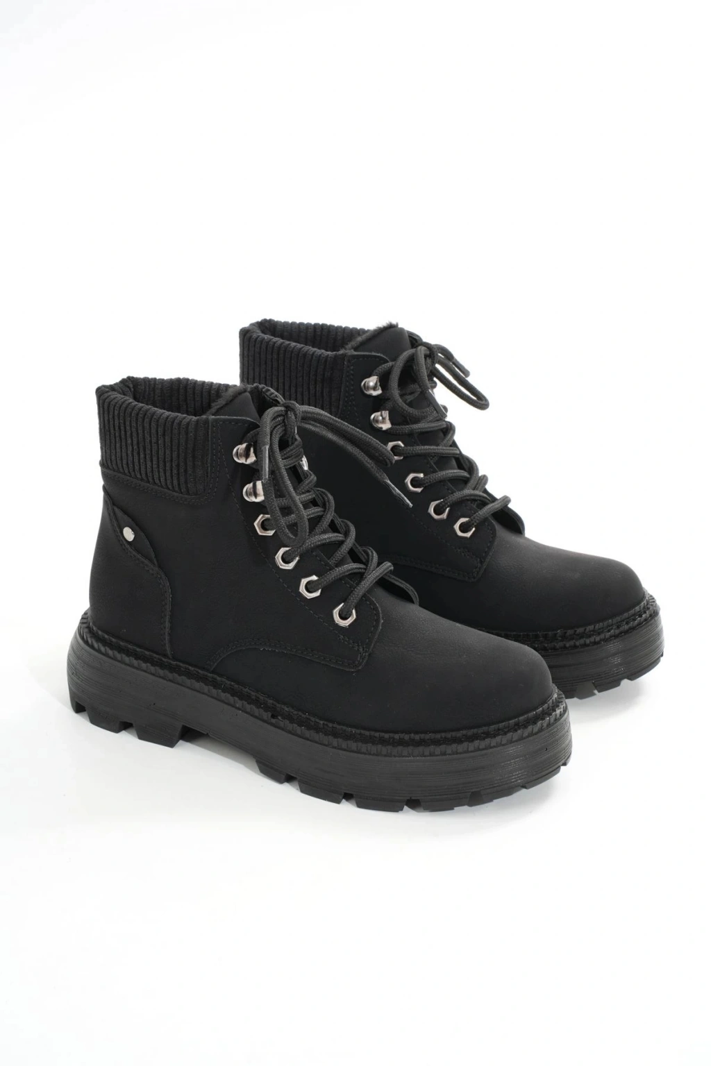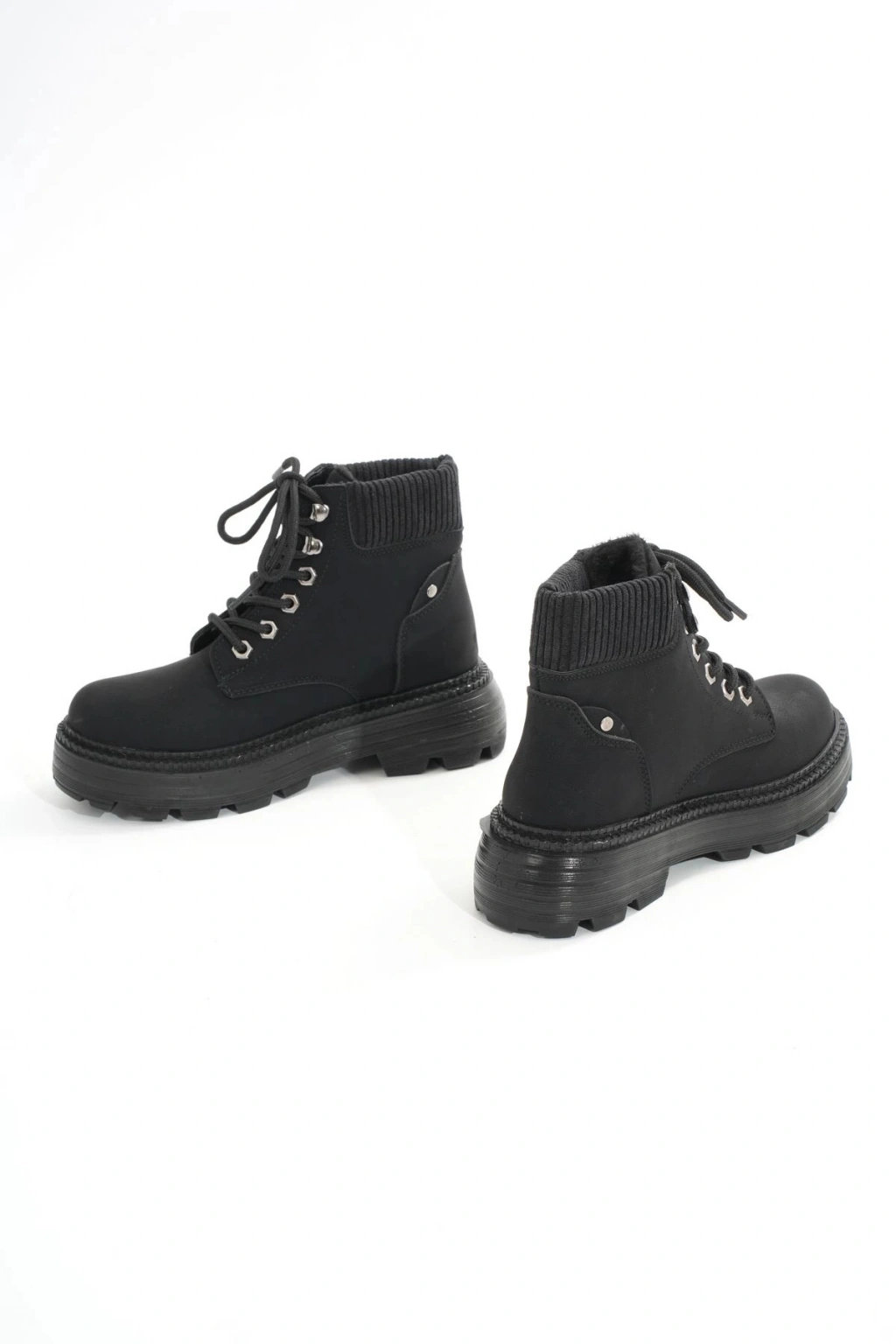 842-2961 Siyah Bağcıklı Kalın Tabanlı Fermuarlı Günlük Kadın Bot