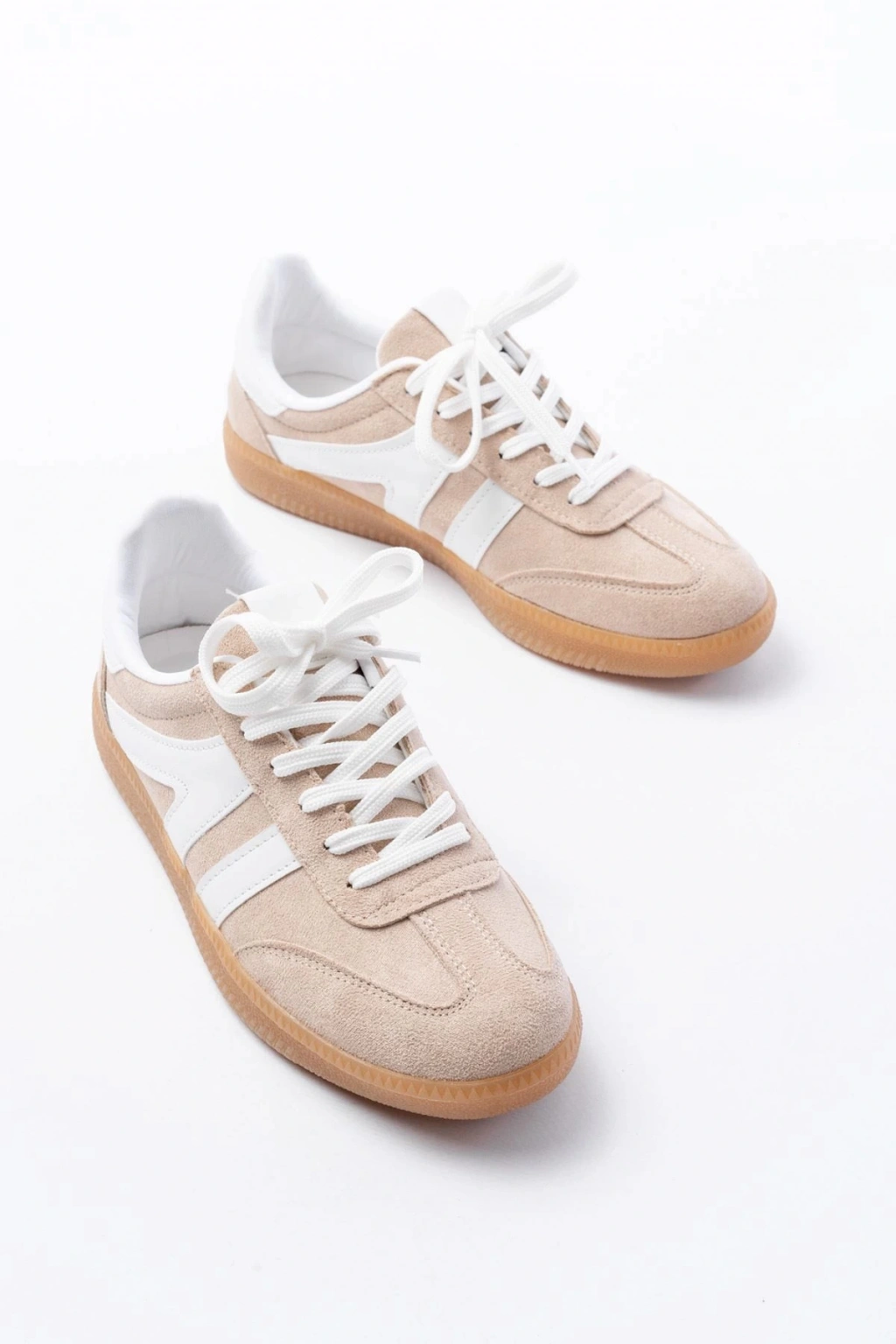 M-1004 Bej Süet Bağcıklı Termo Taban Günlük Kadın Spor