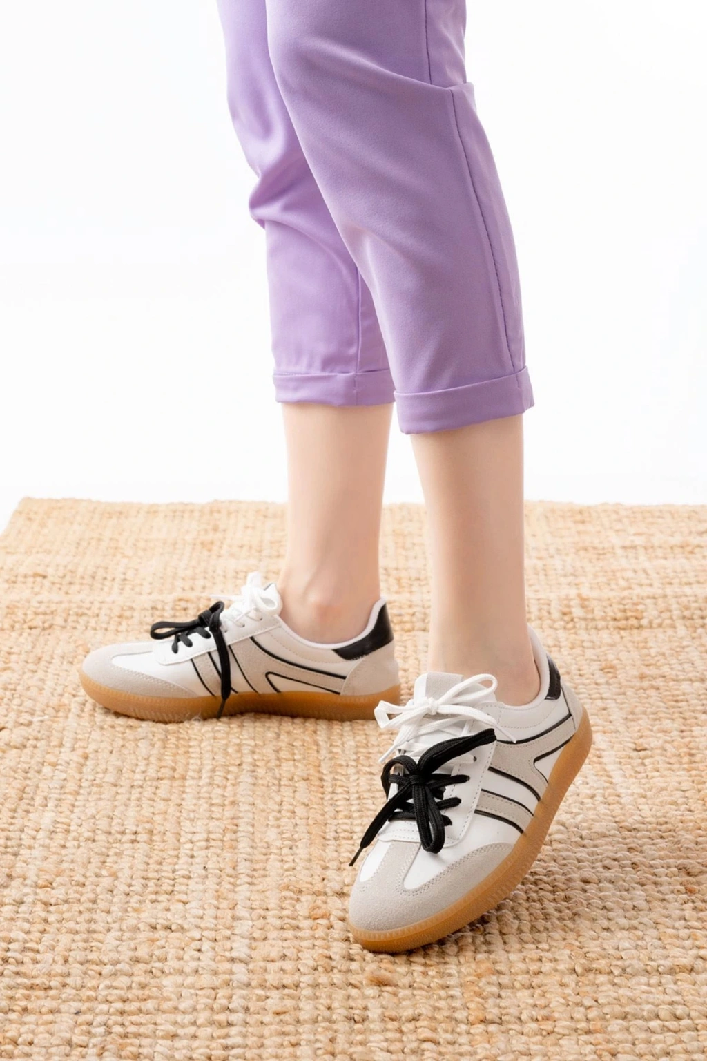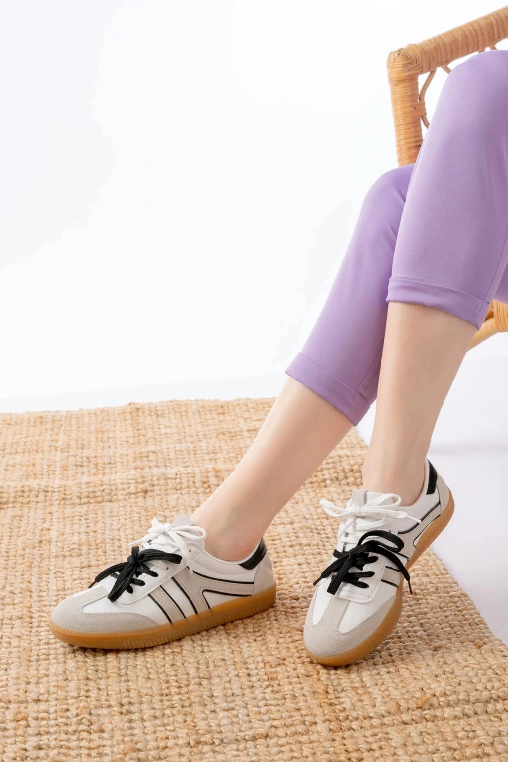 M-6005 Beyaz Garni Bağcıklı Termo Taban Günlük Kadın Spor