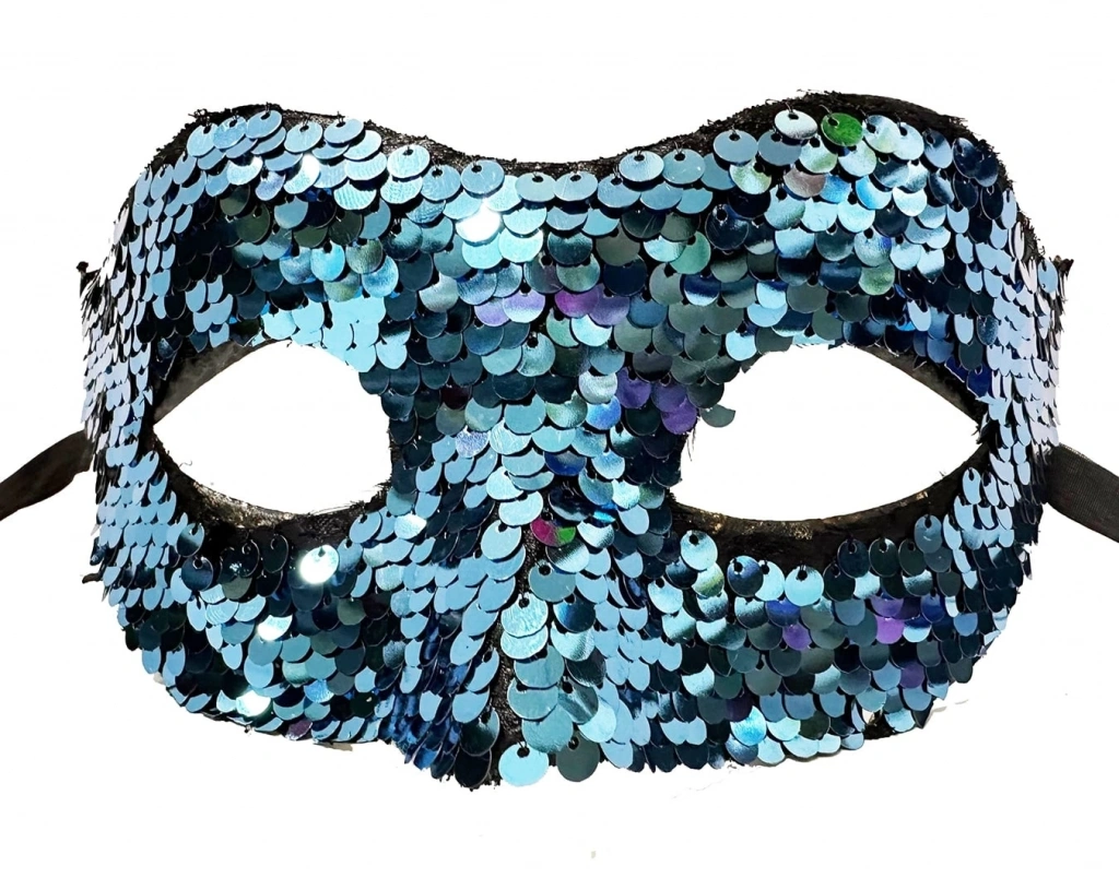 Mavi Renk Payetli Pullu Parti Maskesi Balo Venedik