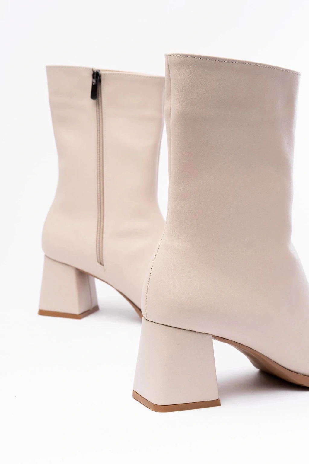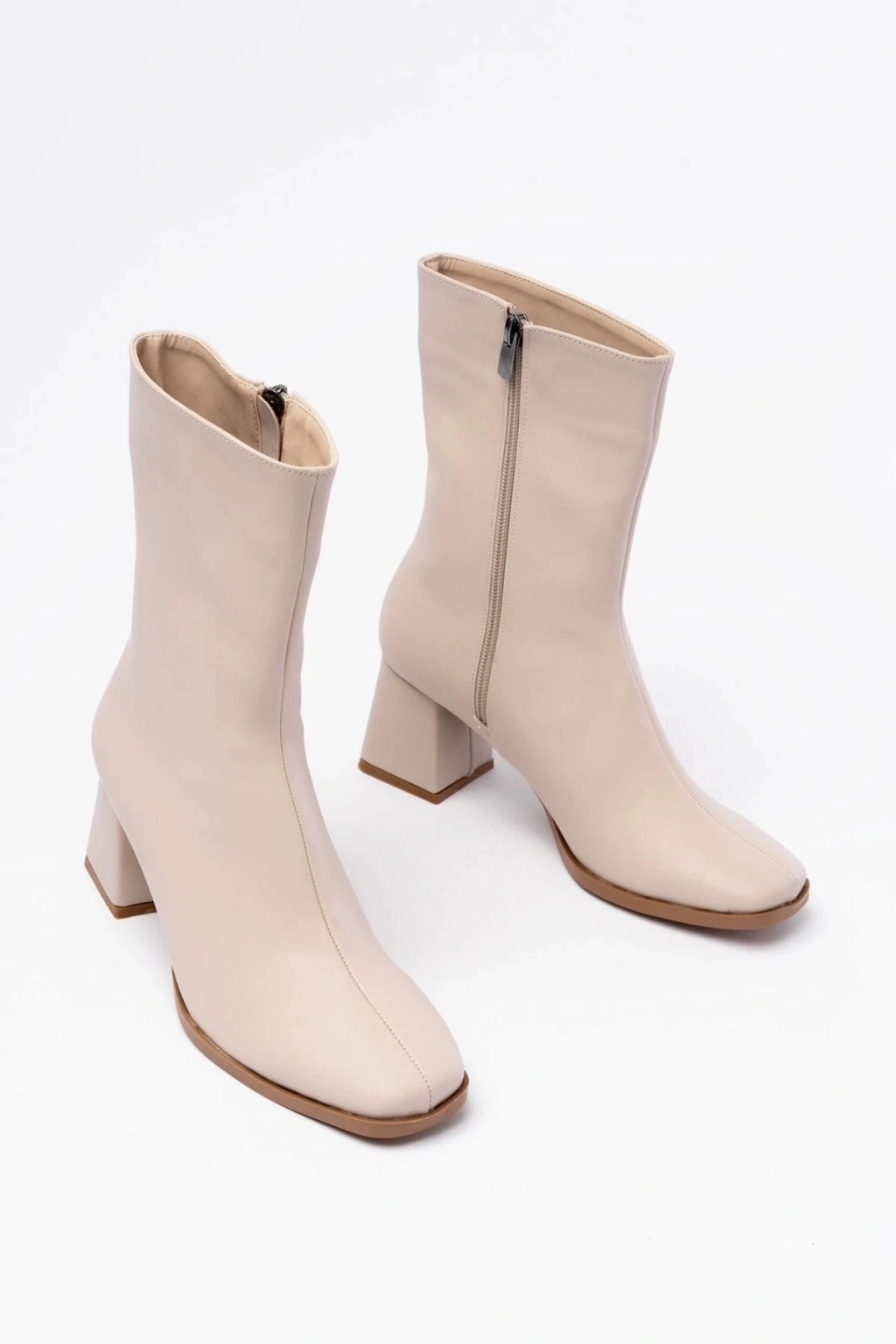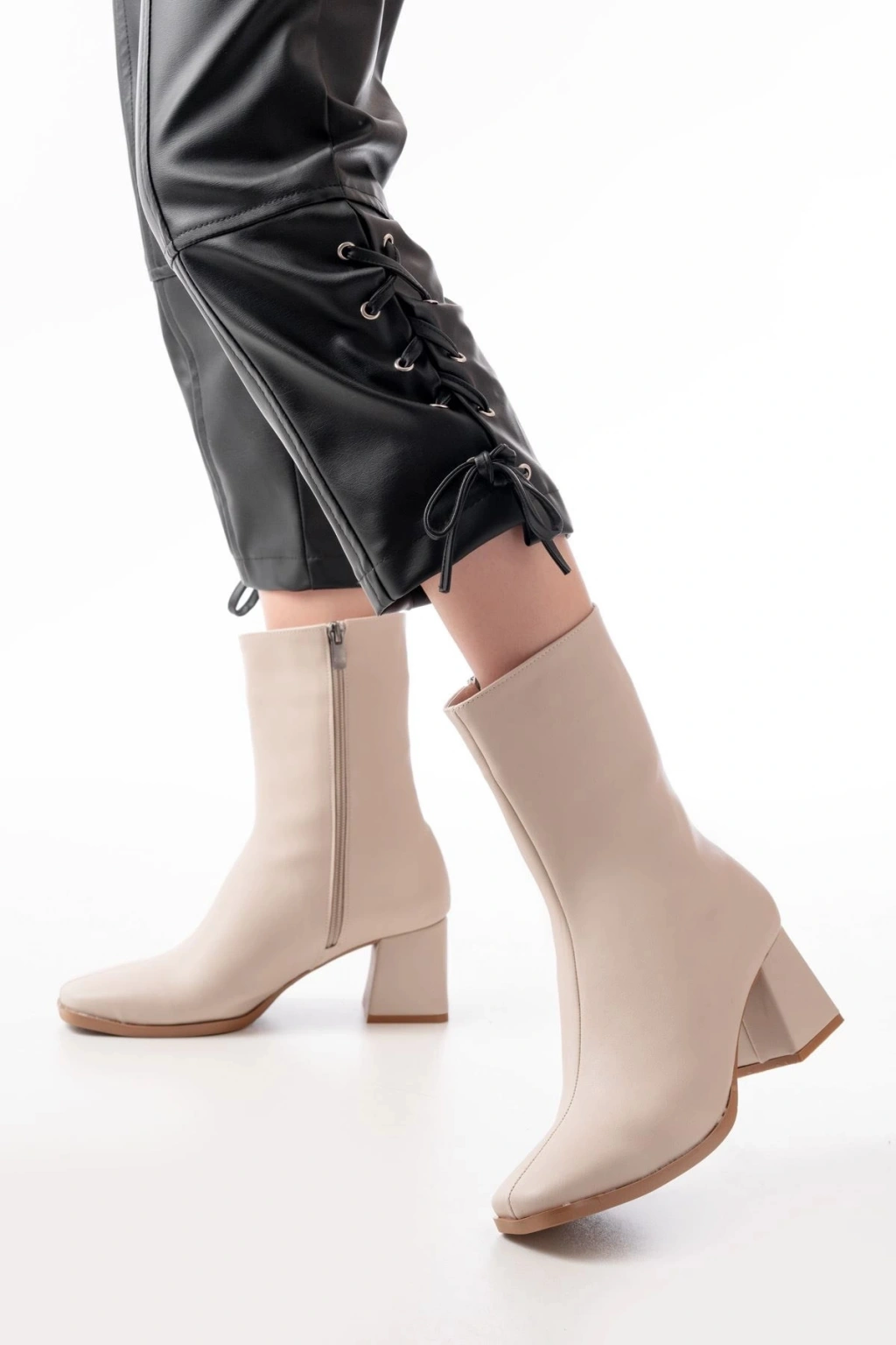 MSK-032 Bej Topuklu Fermuarlı Kadın Bot