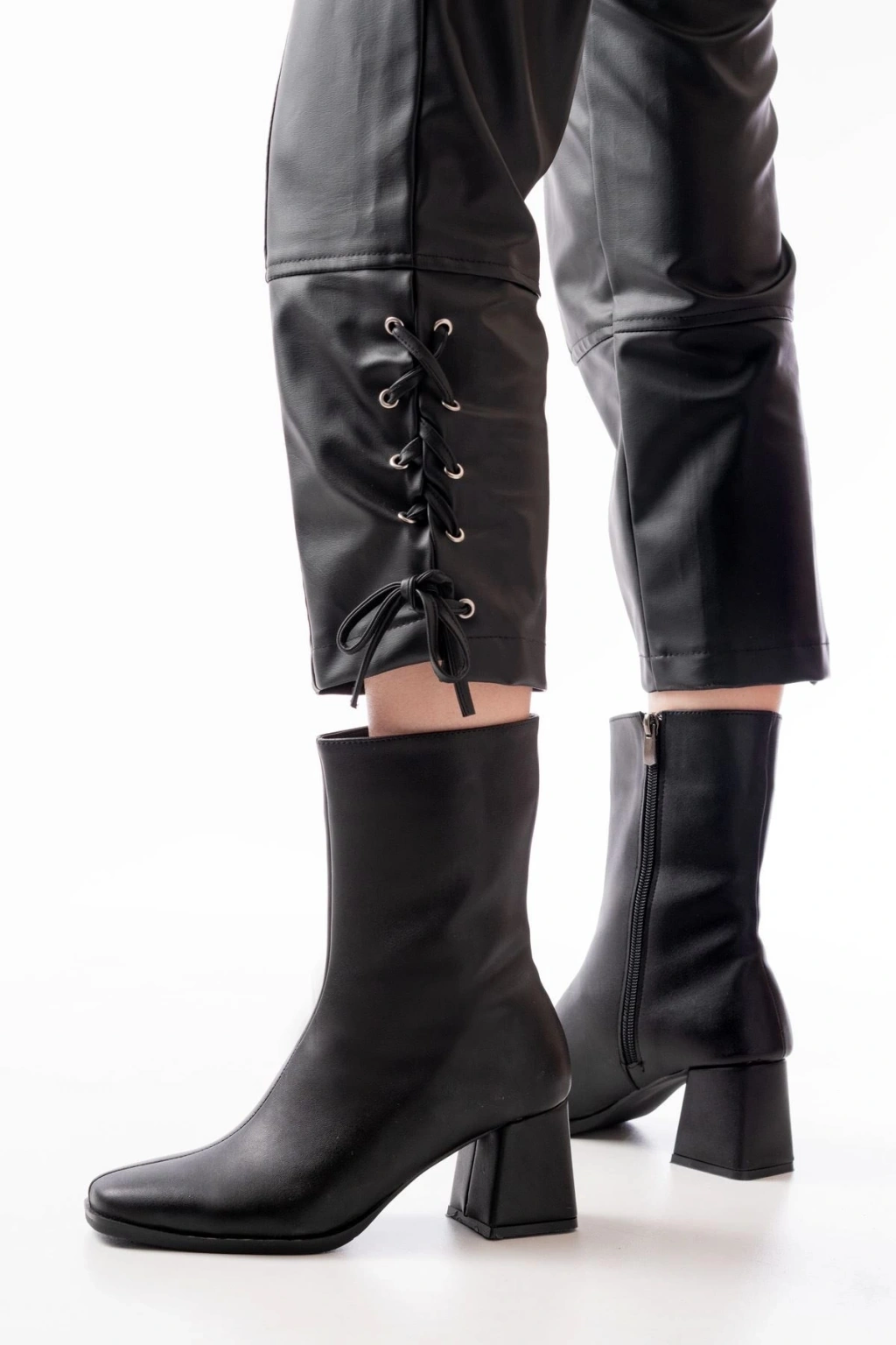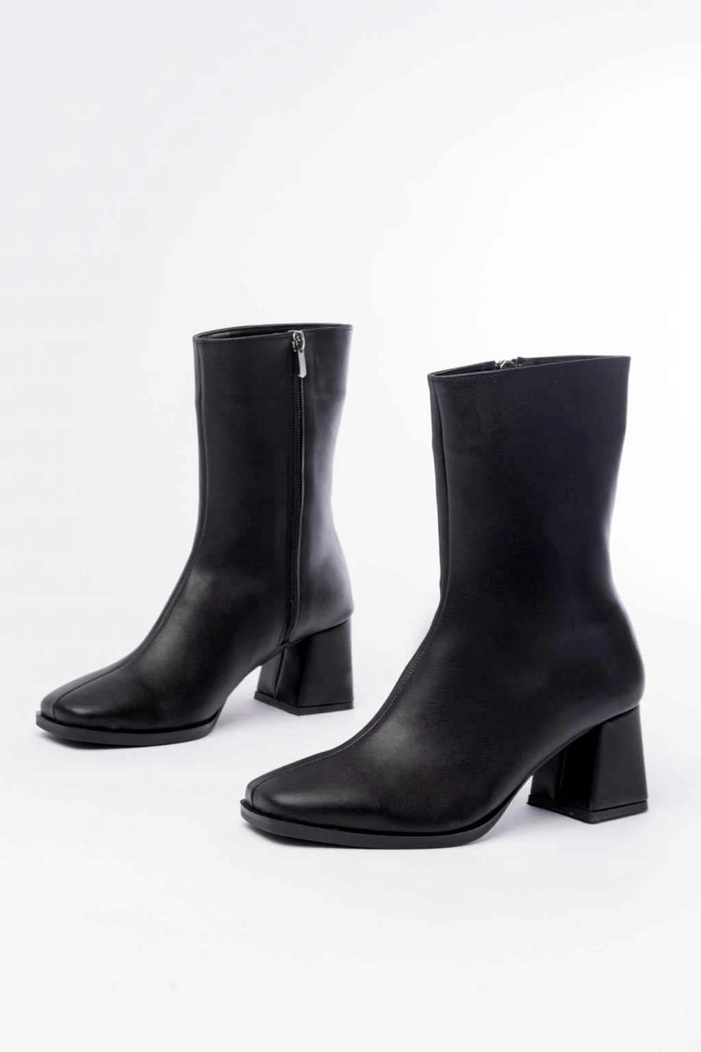 MSK-032 Siyah Topuklu Fermuarlı Kadın Bot