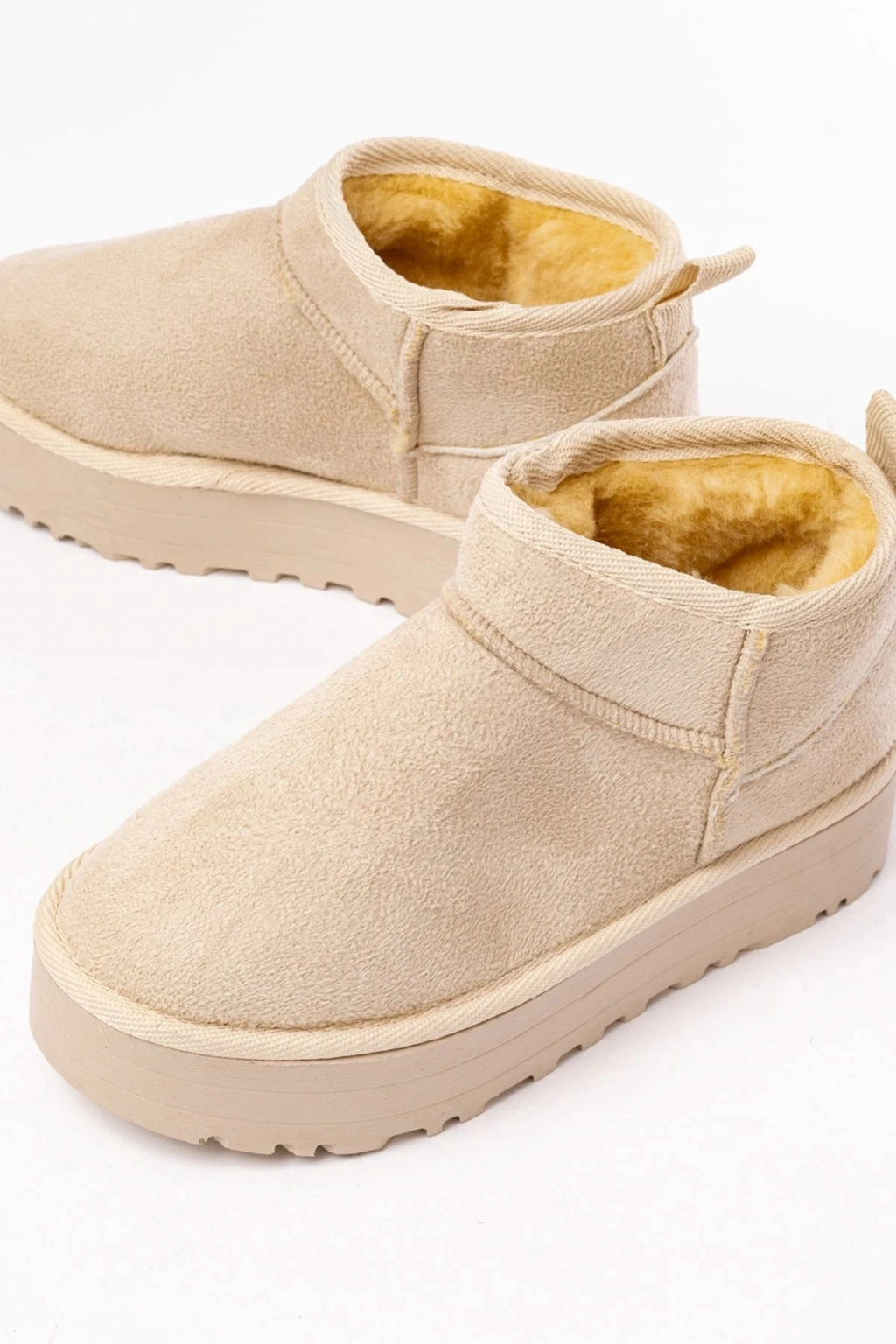 NDR-2850 Bej Süet İçi Kürklü Kışlık Kapalı Burun Kadın Günlük Terlik