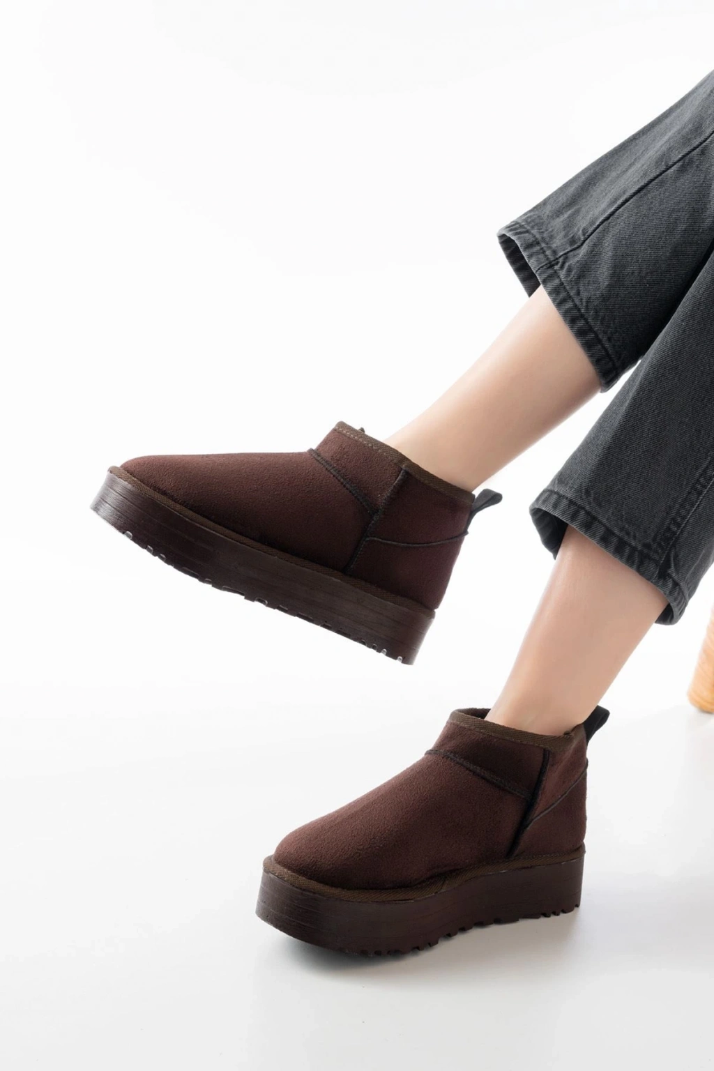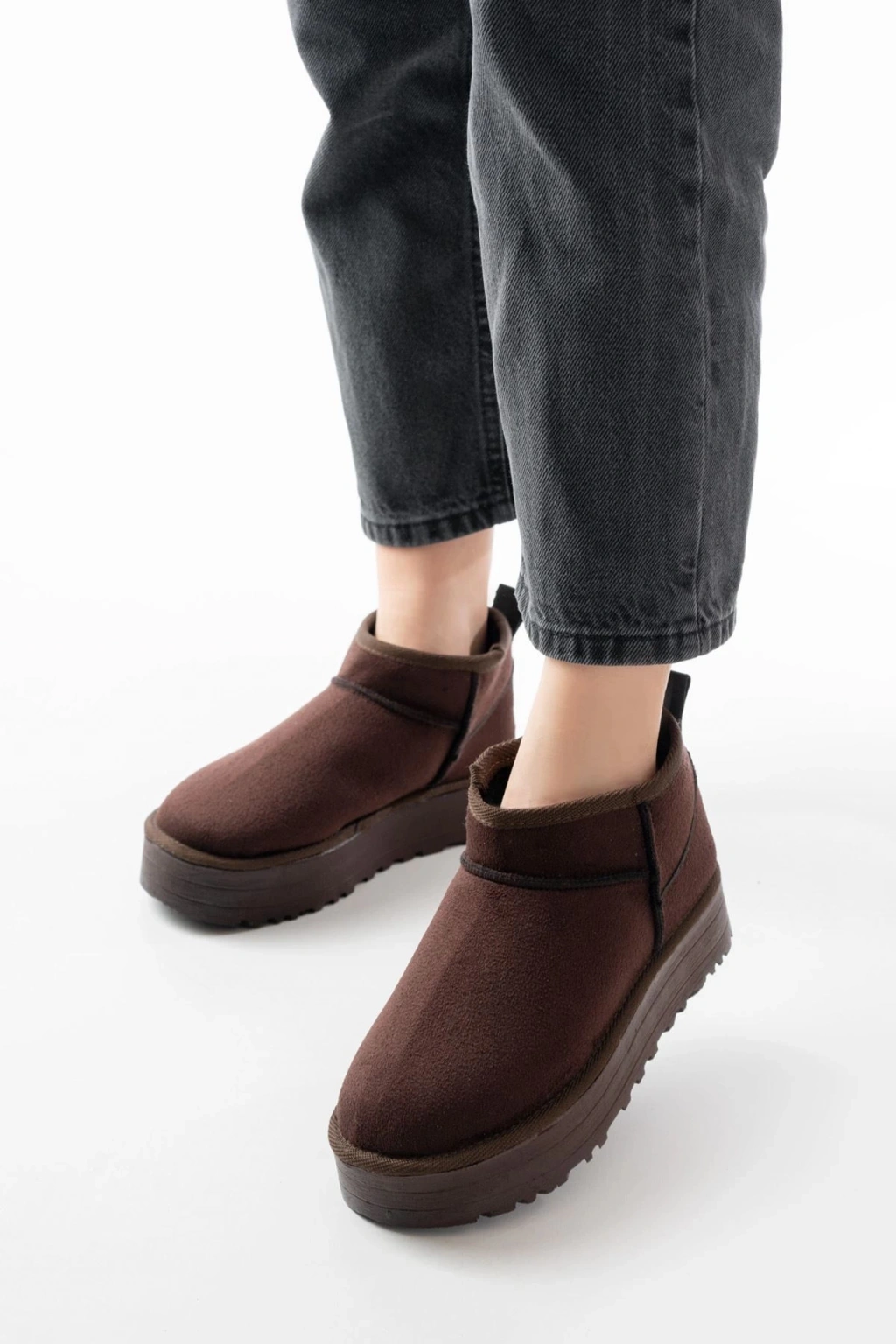 NDR-2850 Kahverengi Süet İçi Kürklü Kışlık Kapalı Burun Kadın Günlük Terlik