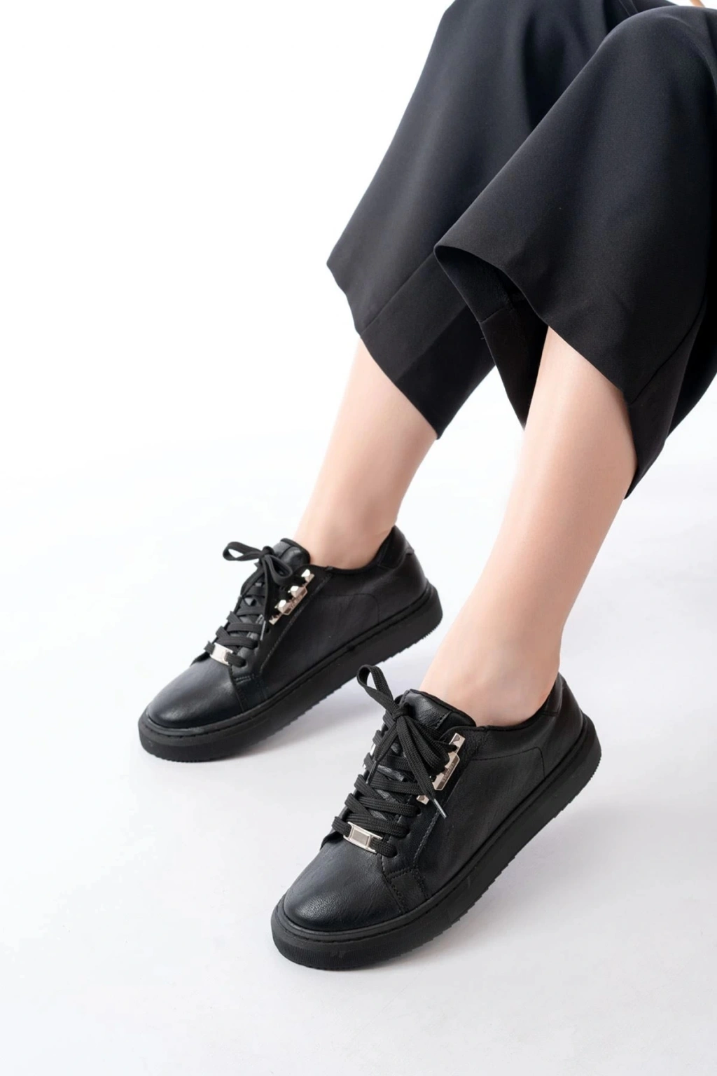 P-910 Siyah Bağcıklı Taban Dikişli Günlük Kadın Spor