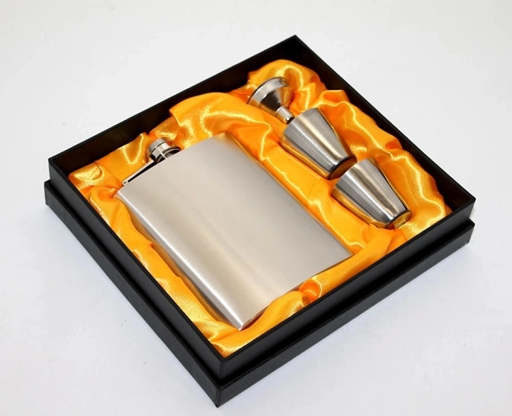 Paslanmaz Çelik 2 Shot Bardak Ve Tabakalı Matara Seti Alk2670