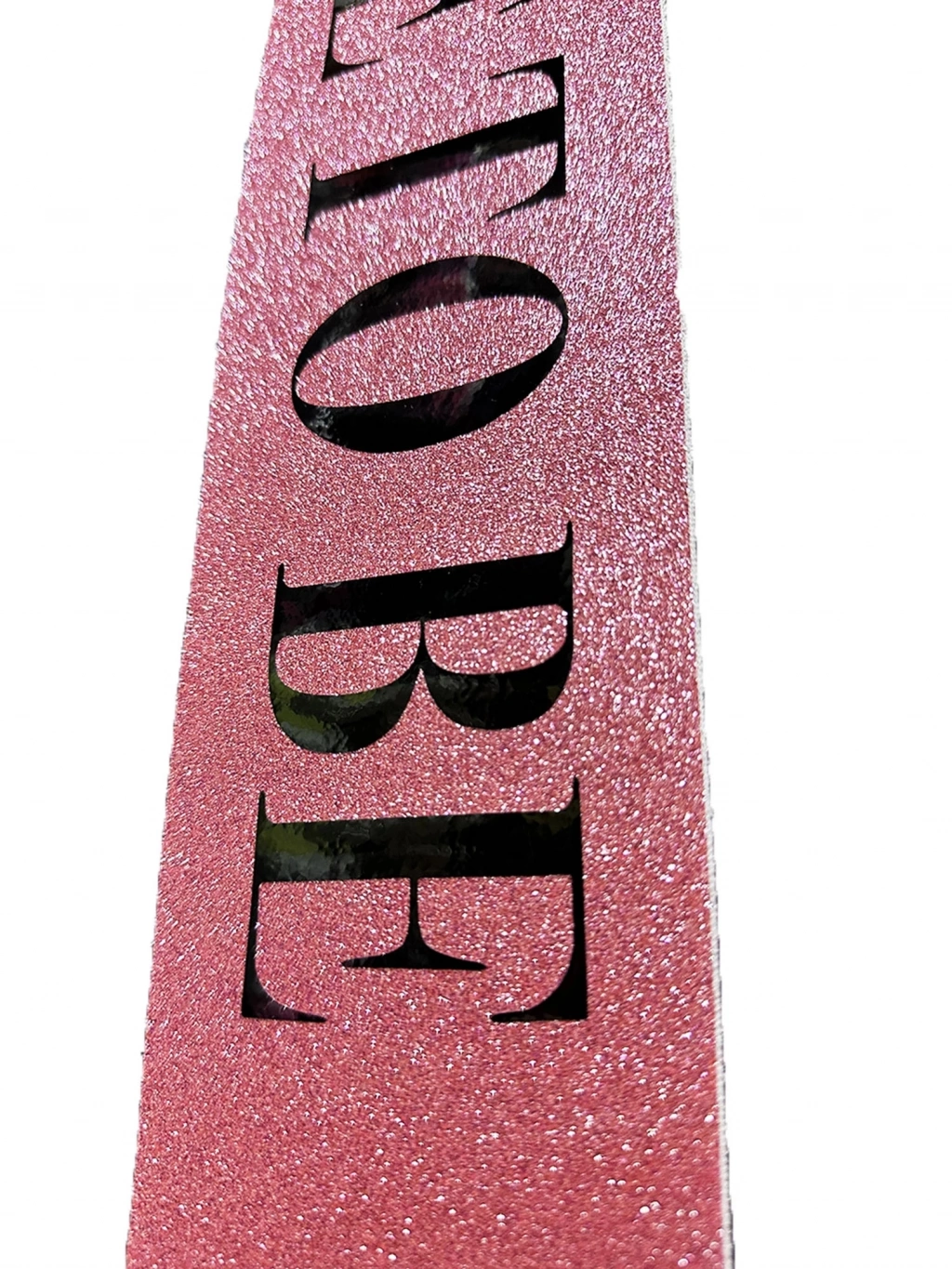 Pembe Üzeri Siyah Kalın "Bride To Be" Yazılı Simli Işıltılı Kuşak Kemer, bekarlığa veda partinizde veya diğer özel günlerde göz alıcı bir aksesuar olmak için mükemmel bir seçimdir. Bu şık ve zarif kemer, her kıyafete ışıltı ve kişilik katacaktır.