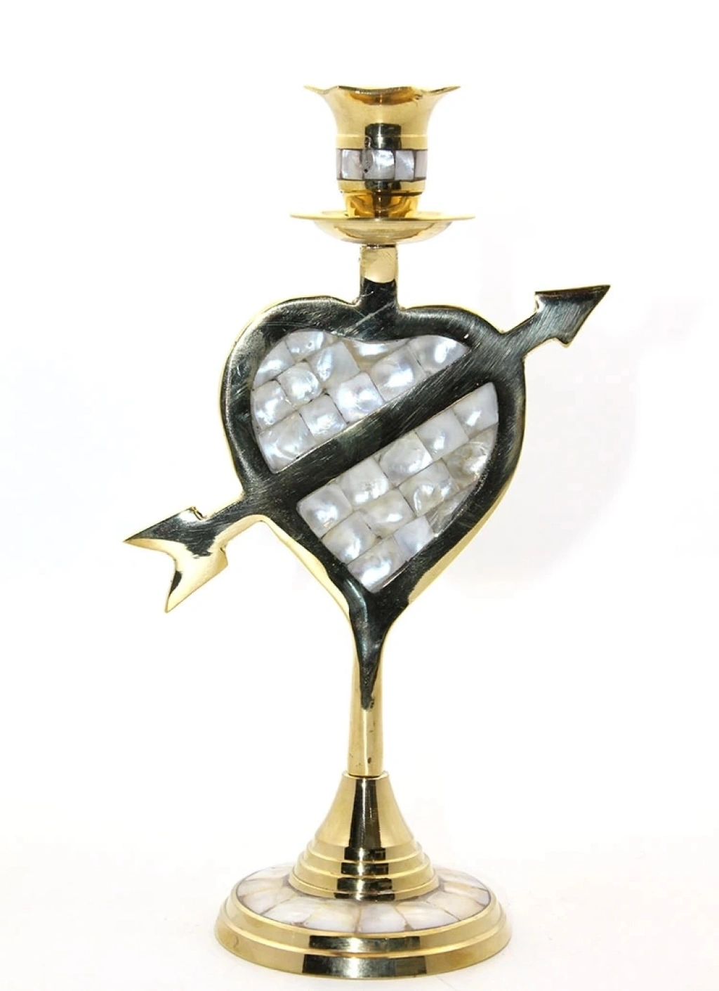Pirinç Ve Sedef Karışımdan Üretilmiştir. Pirinç Sedefli Tekli Şamdan 20 Cm
