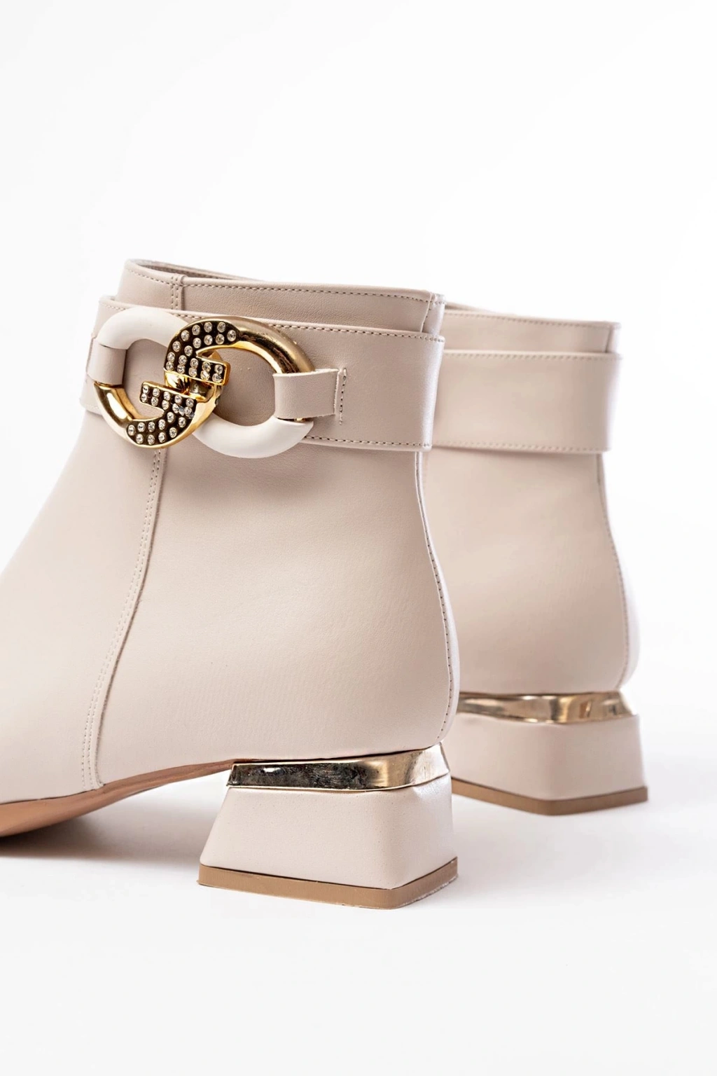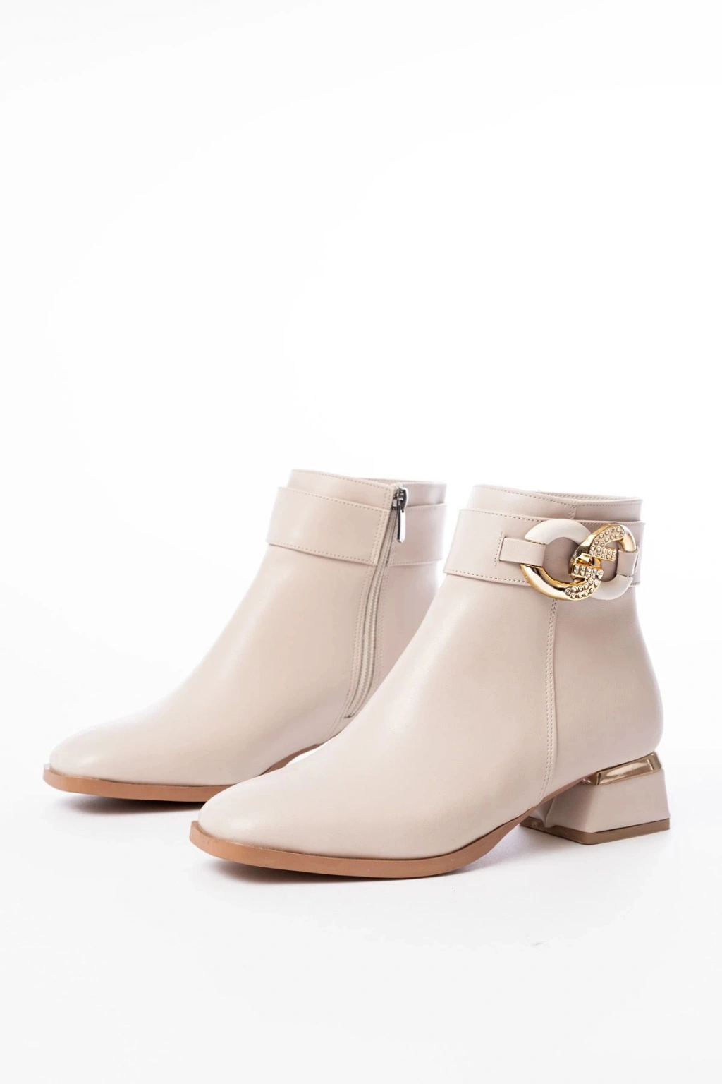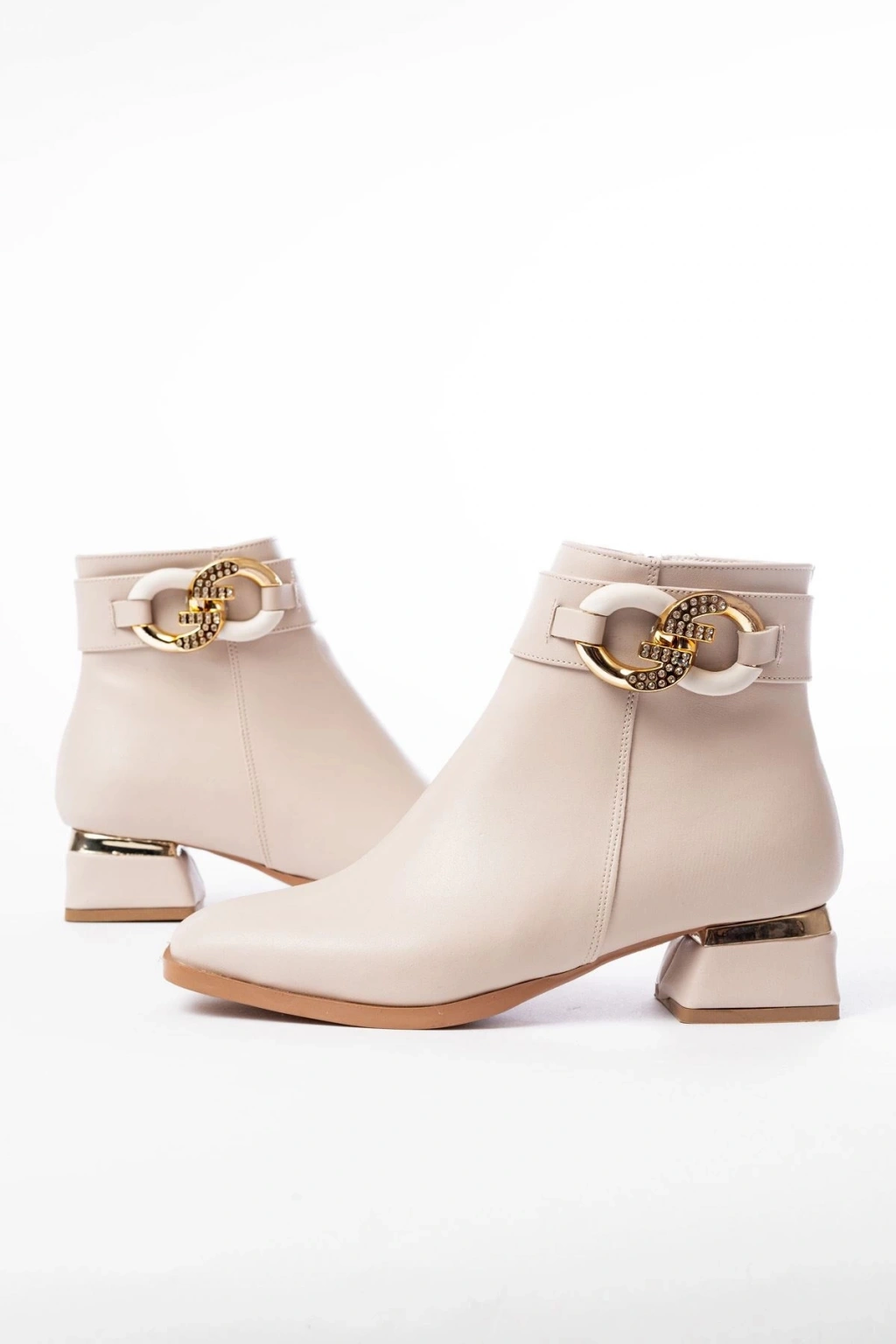 RM-504 Bej Toka Aksesuarlı Topuklu Fermuarlı Günlük Kadın Bot