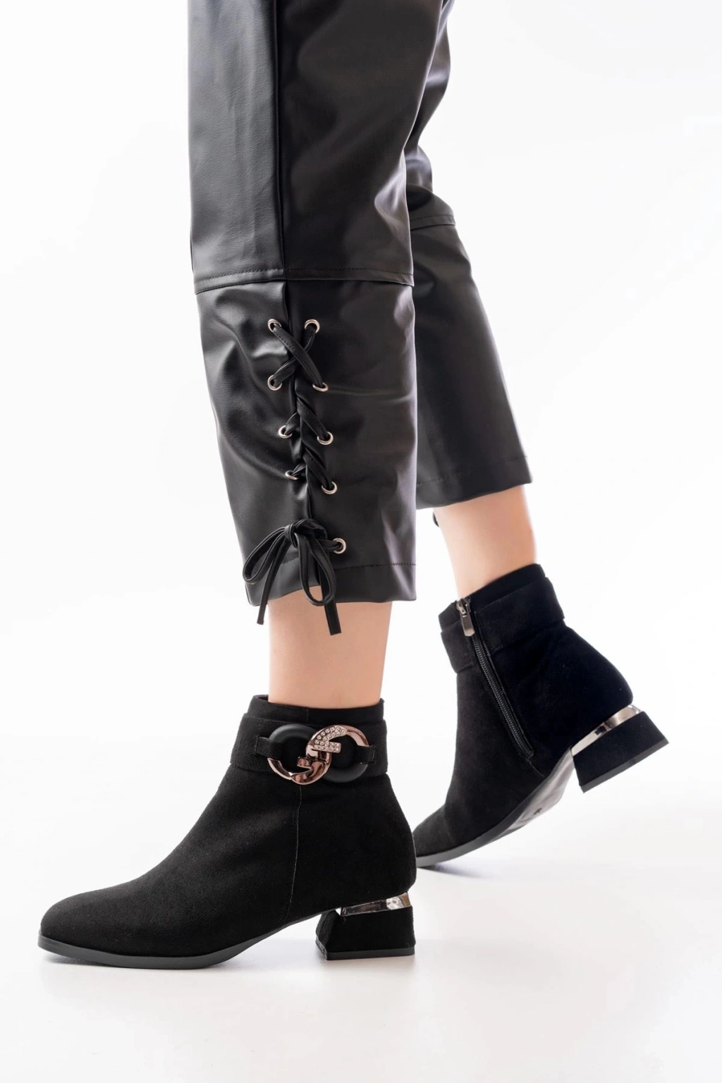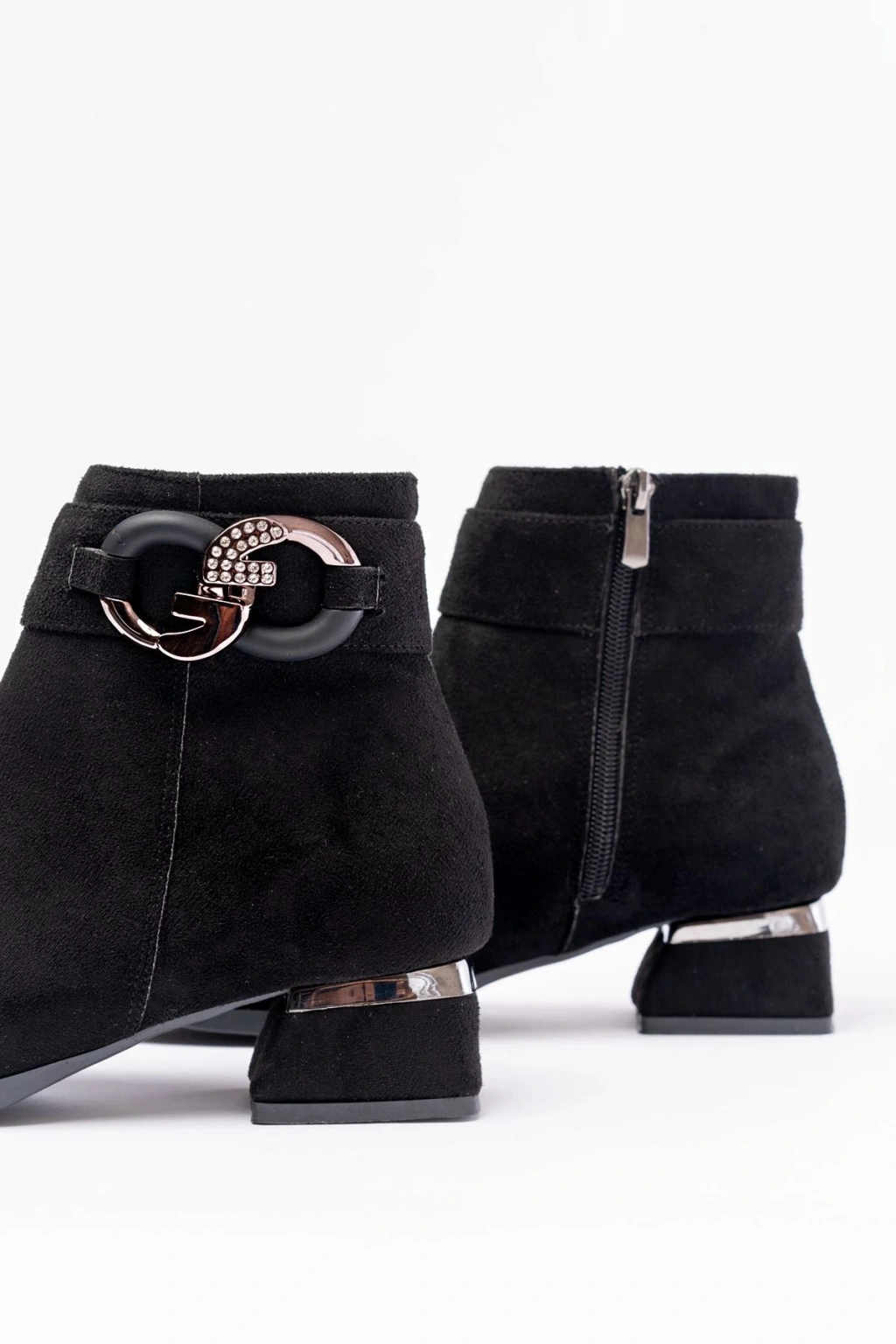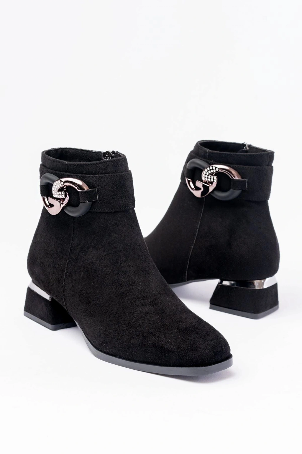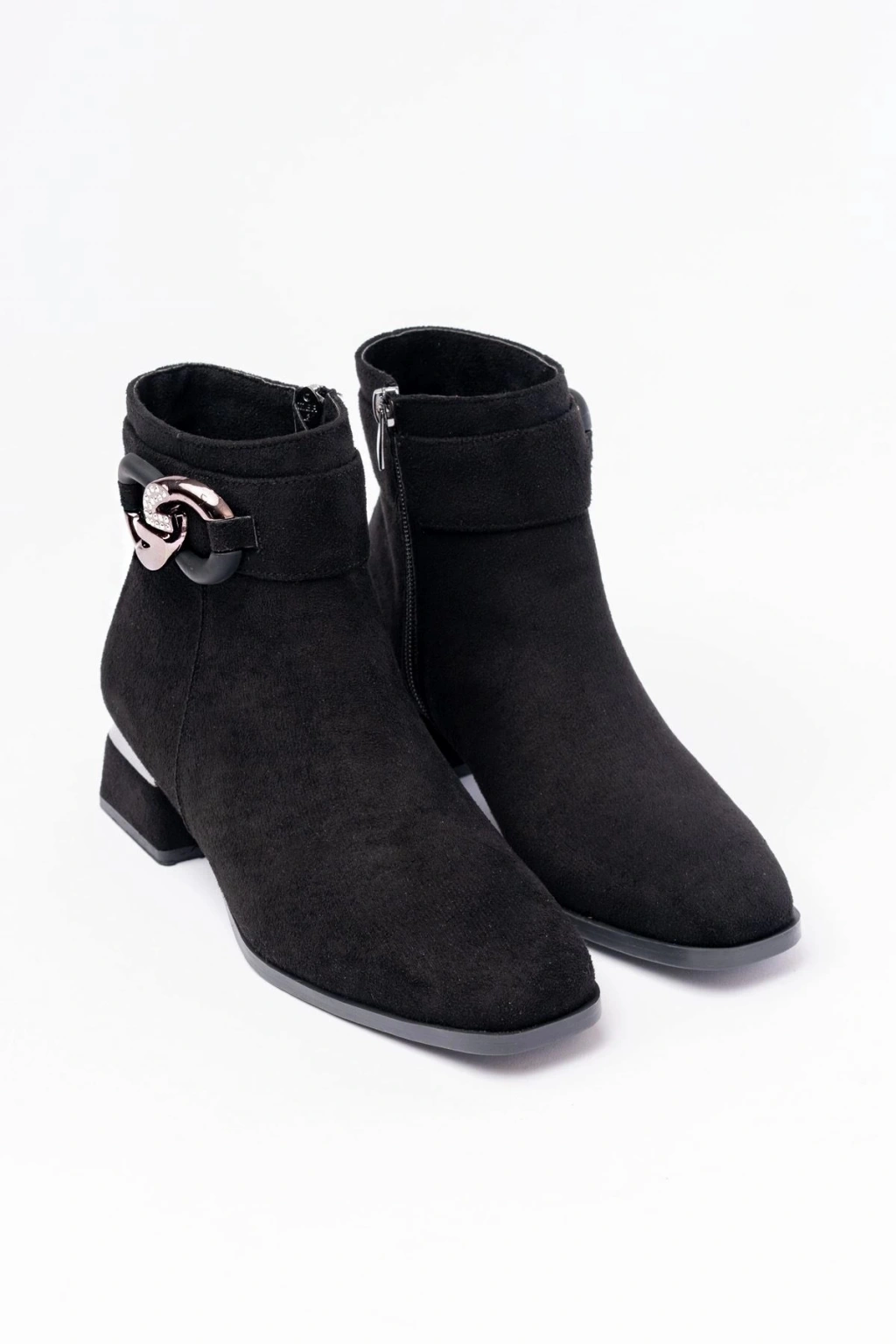 RM-504 Siyah Süet Toka Aksesuarlı Topuklu Fermuarlı Günlük Kadın Bot