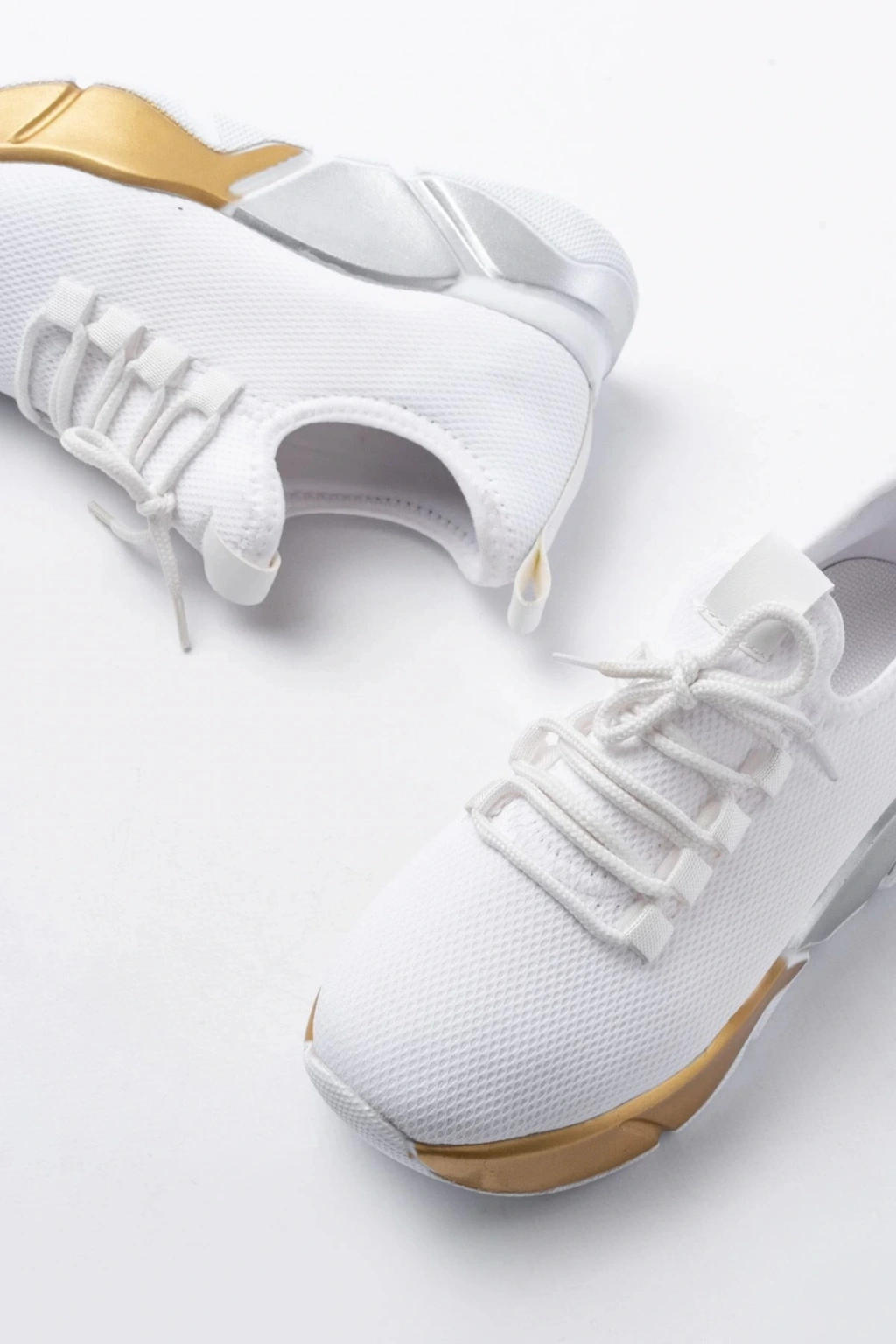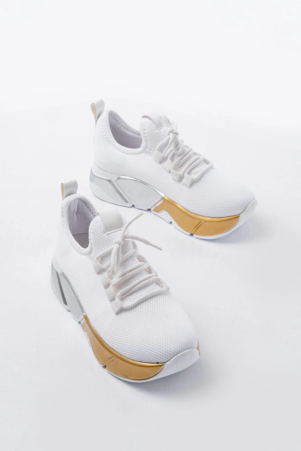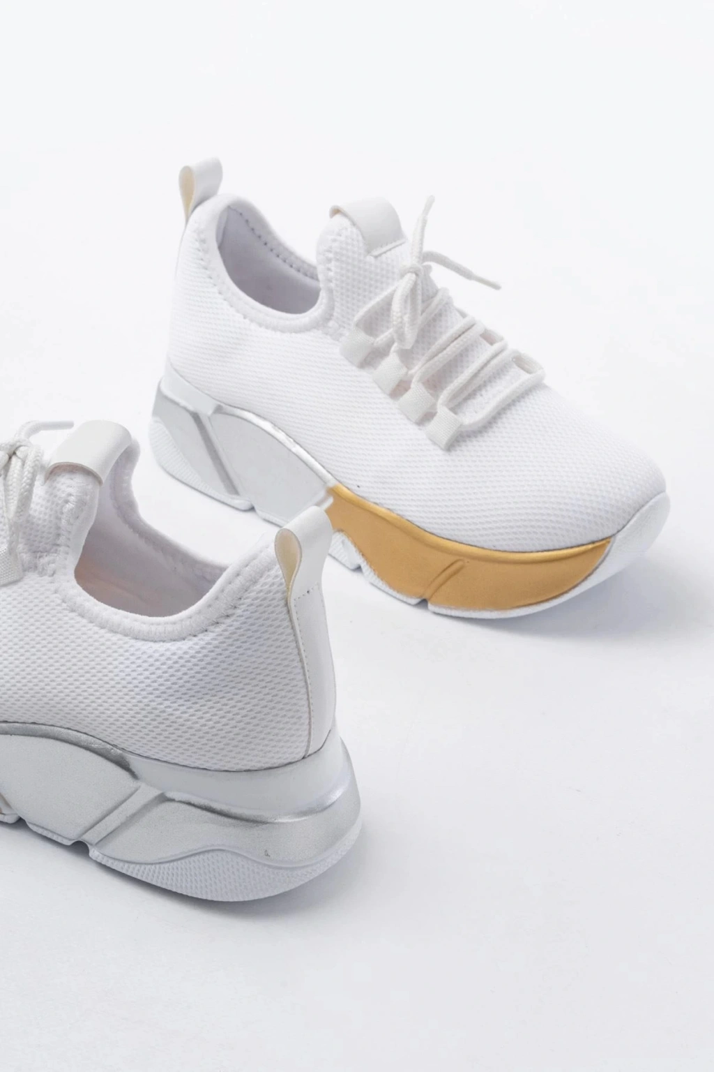 RS-400 Beyaz Bağcıklı Fileli Renkli Taban Günlük Kadın Spor