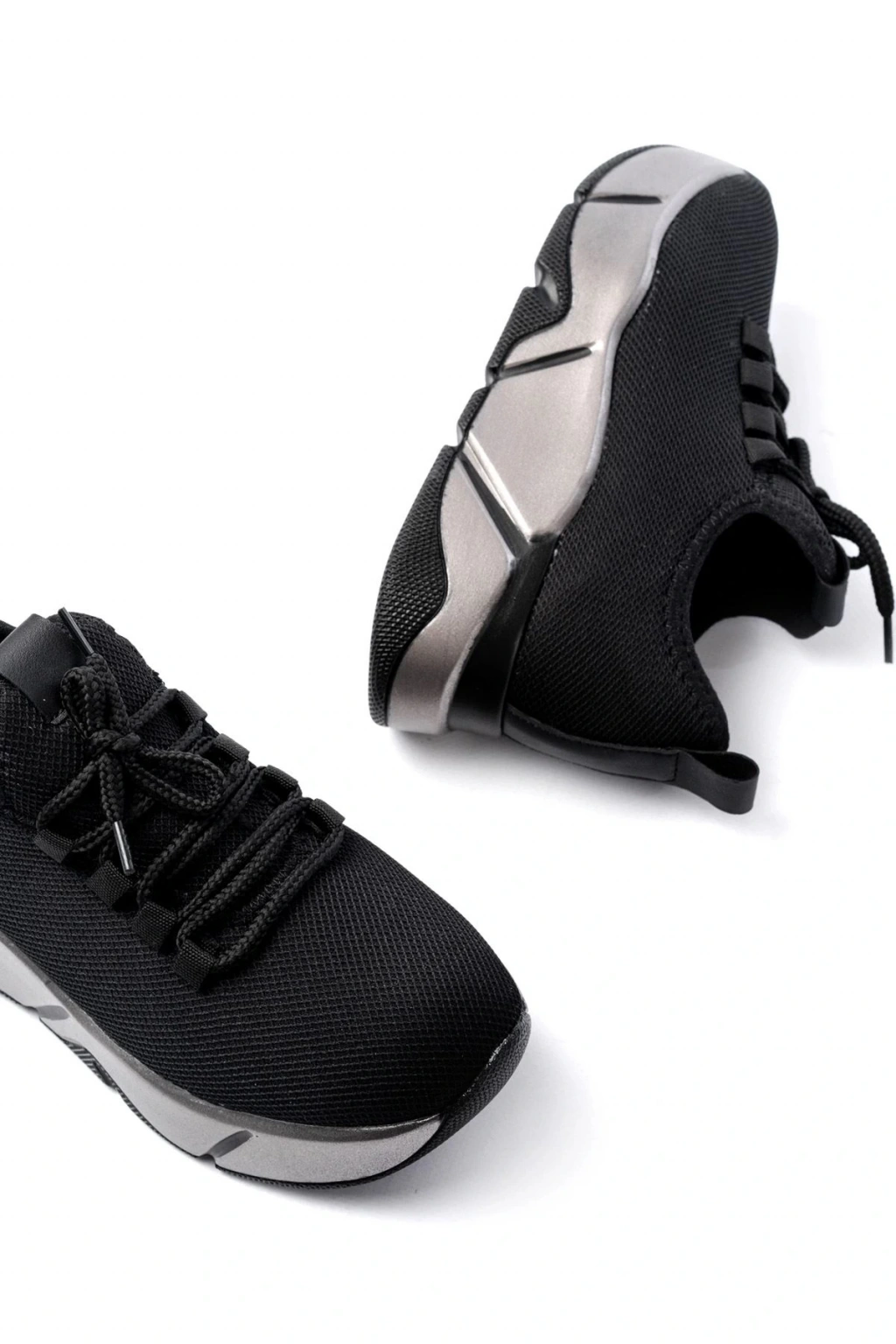 RS-400 Siyah Bağcıklı Fileli Platin Taban Günlük Kadın Spor