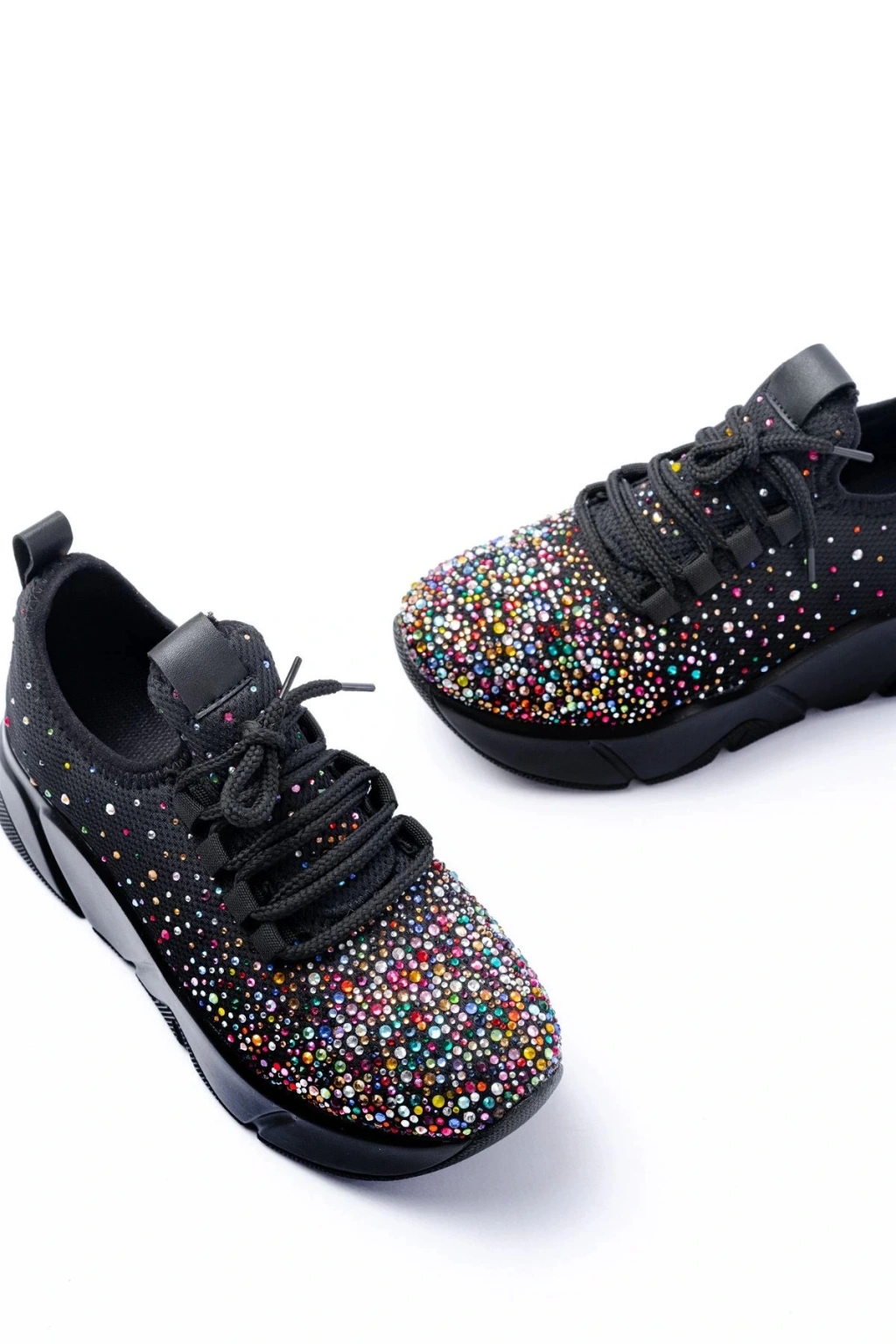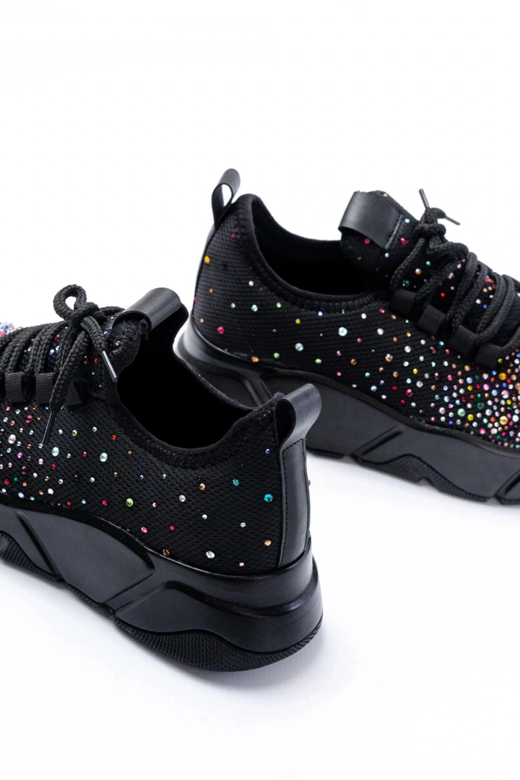 RS-403 Siyah Bağcıklı Fileli Multi Taşlı Günlük Kadın Spor
