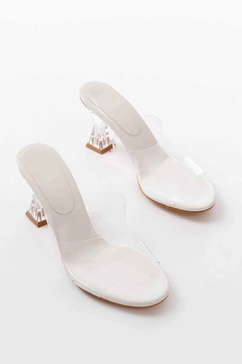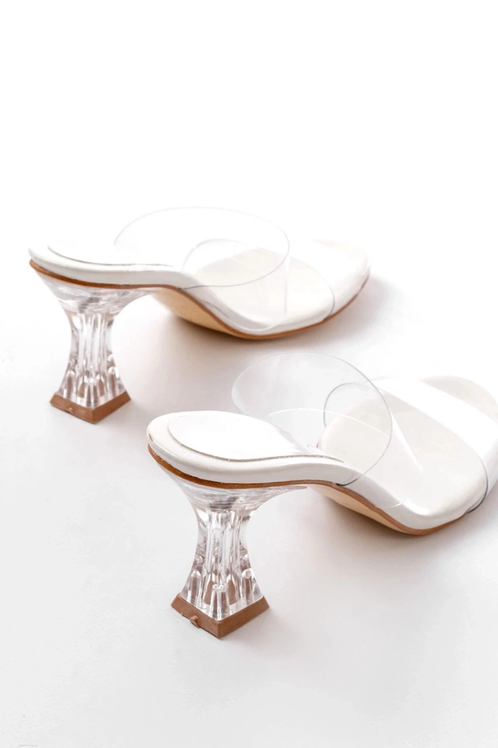 S-618 Beyaz Rugan Tek Bantlı Topuklu Kadın Terlik