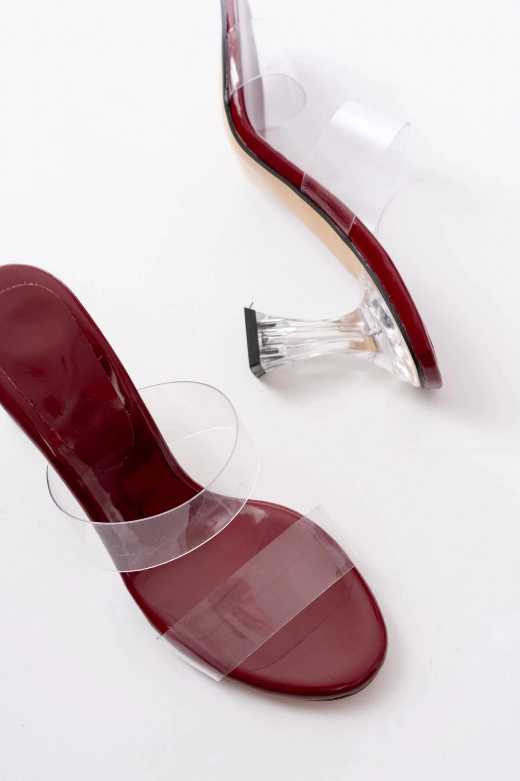 S-618 Bordo Rugan Tek Bantlı Topuklu Kadın Terlik