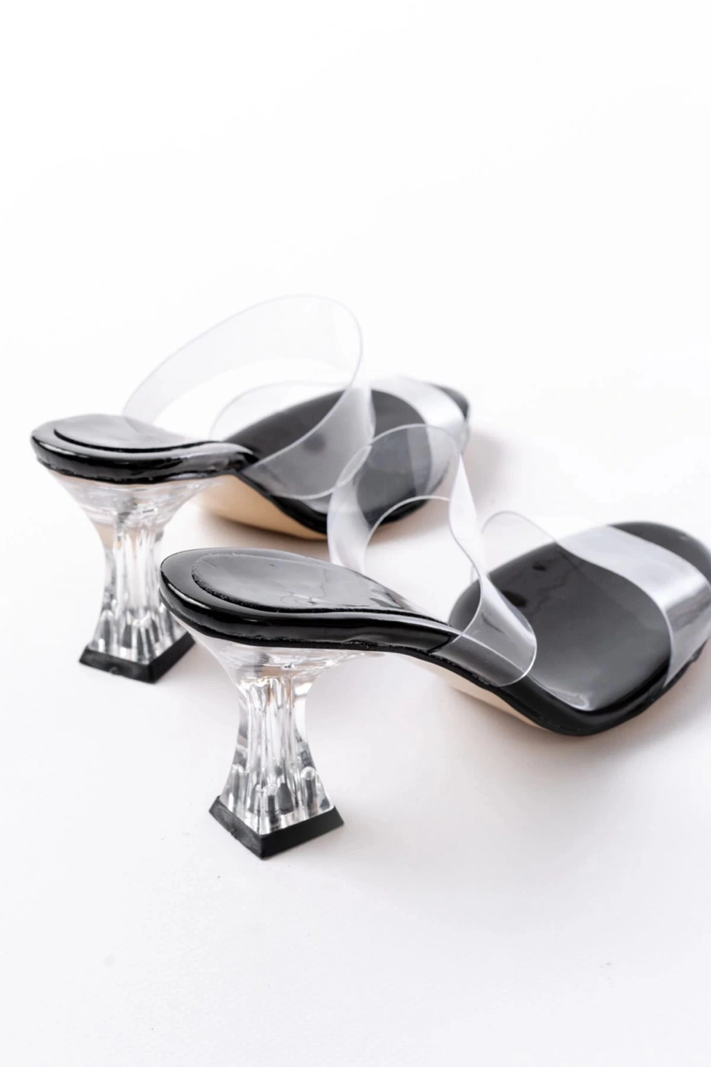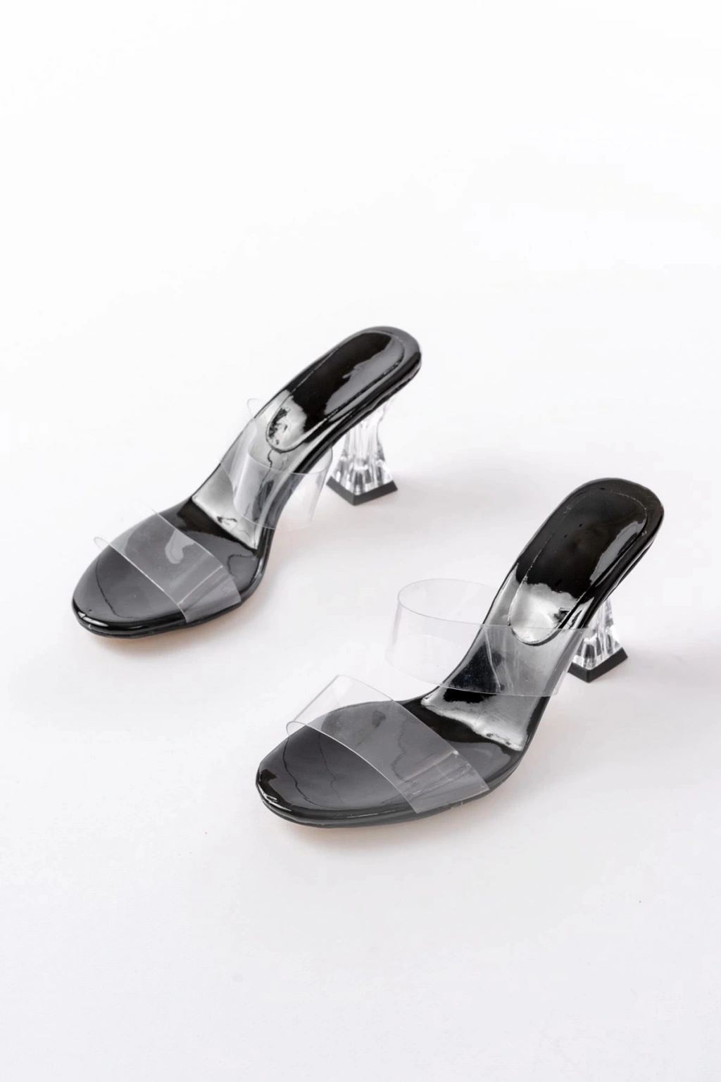 S-618 Siyah Rugan Tek Bantlı Topuklu Kadın Terlik