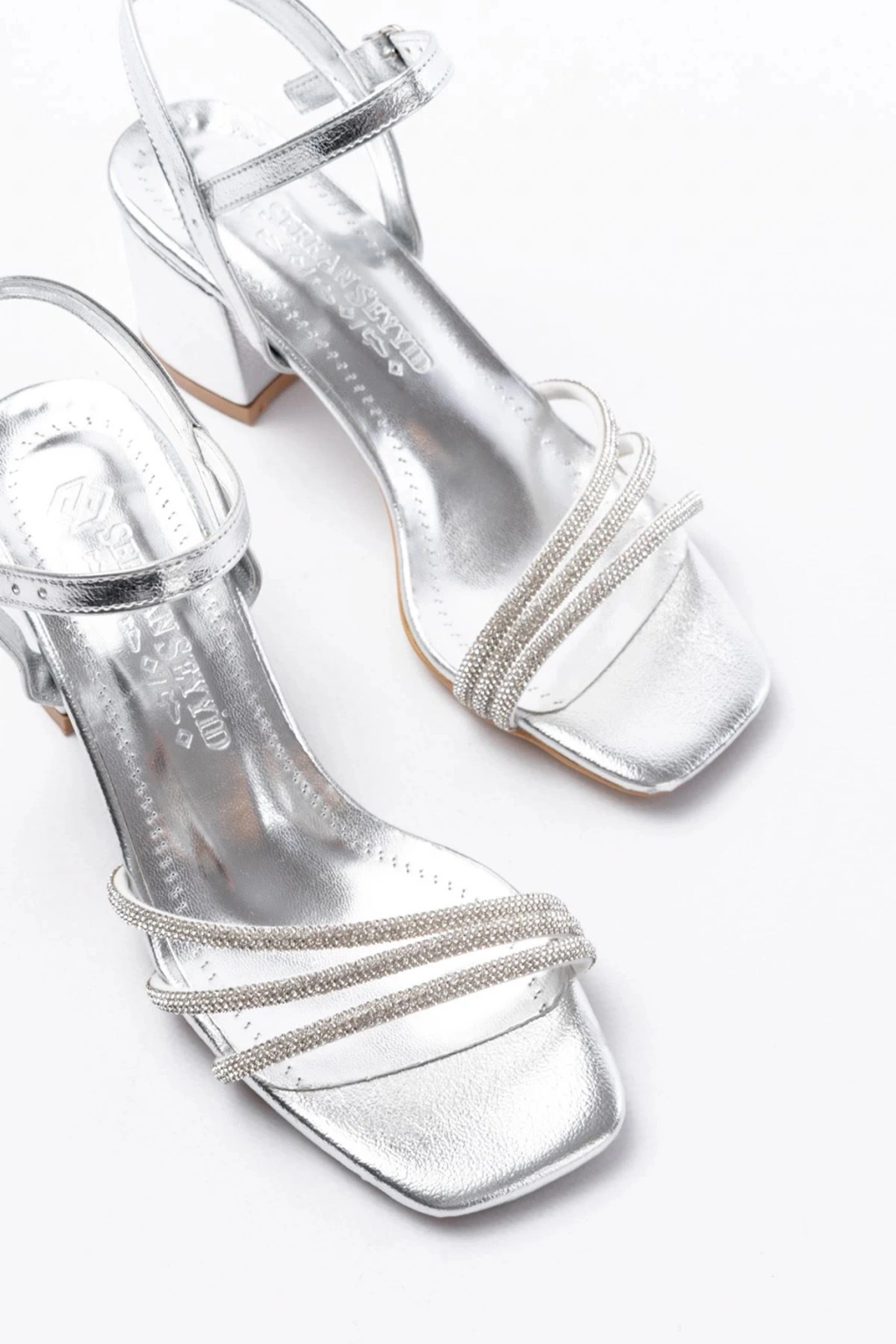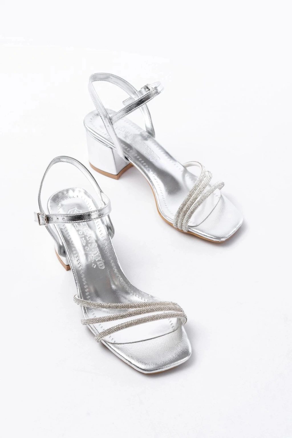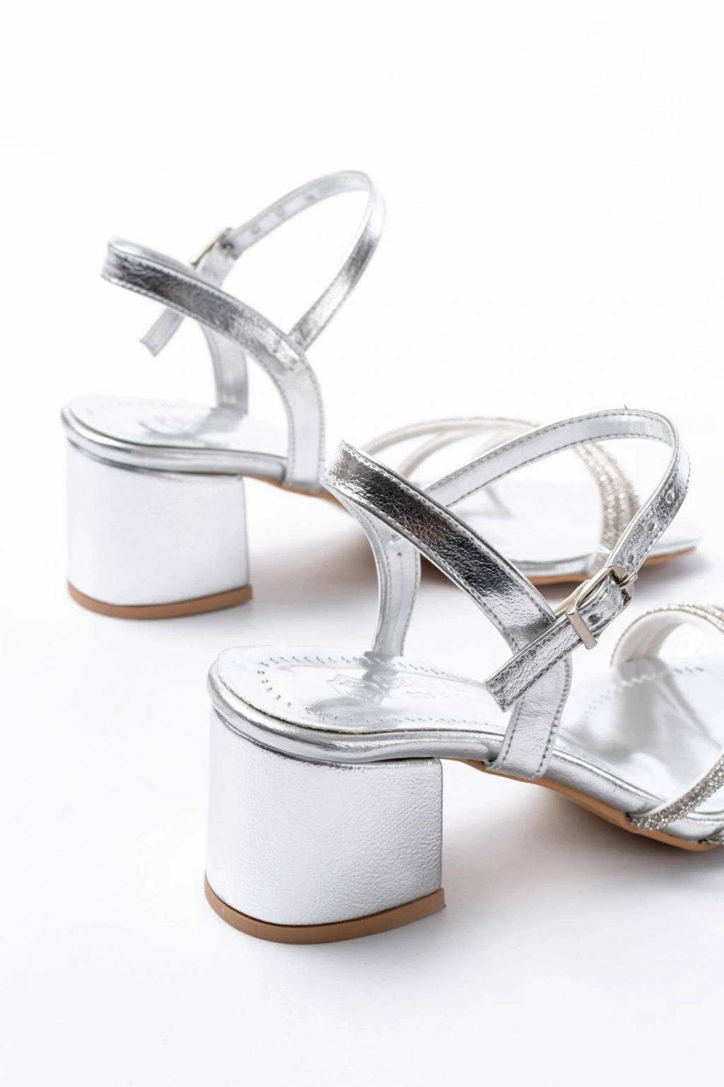 S-889 Gümüş 3 Bantlı Topuklu Kadın Ayakkabı