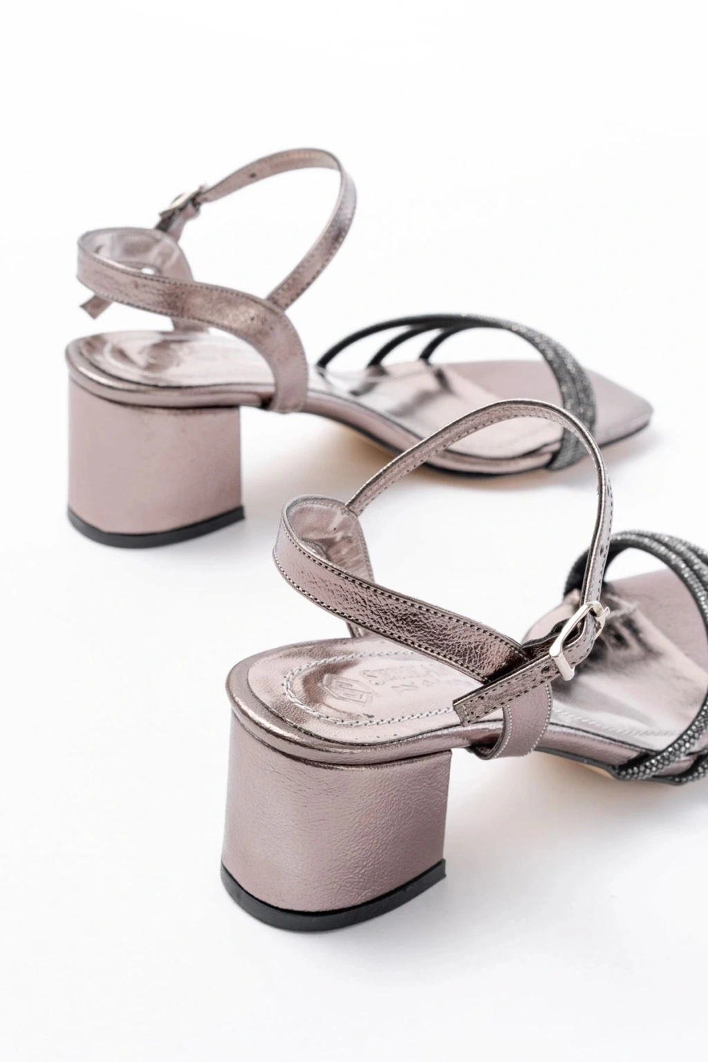 S-889 Platin 3 Bantlı Topuklu Kadın Ayakkabı